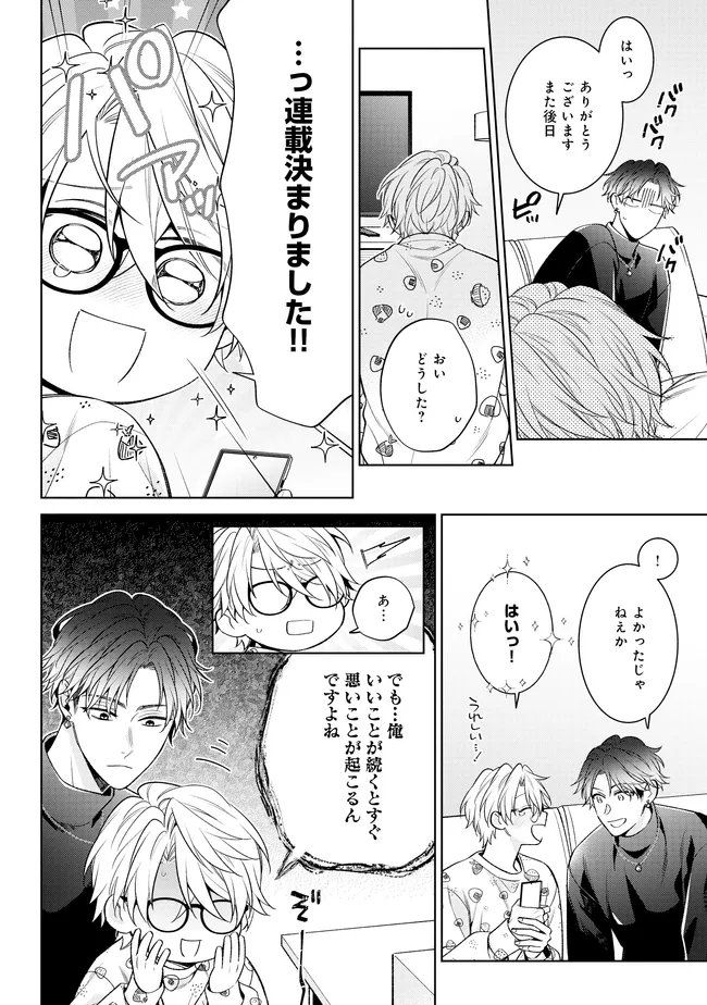 0時を過ぎたら君のもの 第10話 0時を過ぎたら君のもの 投稿者 admin - 8か月 前に 幸せな読書漫画 0時を過ぎたら君のもの 第10話 , いいねと共有ボタンをクリックすることを忘れないでください. Manga 0時を過ぎたら君のもの 常に更新されます 無料コミック Comic Top. 他のマンガの更新を読むことを忘れないでください。 マンガコレクションのリスト 無料コミック Comic Top マンガリストメニューにあります. お友達と共有しましょう! Facebook Twitter Pinterest Whatsapp 前のエピソード すべての章 次のエピソード リスト ページング Loading.. 前のエピソード すべての章 次のエピソード リスト ページング お友達と共有しましょう! Facebook Twitter Pinterest Whatsapp お気に入りに追加に続く 3 人 0時を過ぎたら君のもの 連載打ち切りを宣告された売れない少年マンガ家の小日向海里は、担当編集から少女マンガ家への転向を勧められる。“恋愛童貞”の自分が恋を題材にしたストーリーなど描けるはずもない…と断ろうとしたが、実質のクビを言い渡されてしまい、泣く泣く描くことに…。 そして、やはり新しい担当との打ち合わせで、次回作について盛大なダメ出しをくらってしまう。 少女マンガに必要な“胸キュン”を学ぶため、ホストクラブへ行くことになり――…!? 茶野まめこ(著者) BLforgirlsホストメガネ受け俺様攻め健気受け漫画家男の子の事情腹黒