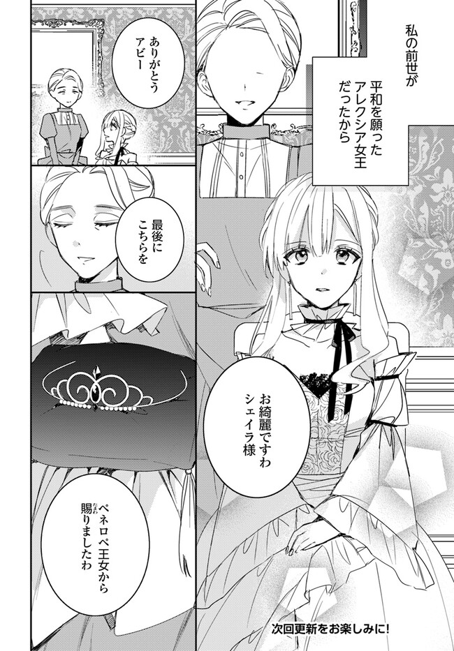 転生したら身分が逆転!? 時を超えて結ばれる初恋ロマンス! 伯爵令嬢シェイラの前世は、100年前に命を落とした女王・アレクシア。 前世の魔法知識はあれど、魔法を使えないシェイラだったが、その知識と初恋の従騎士クラウスの転生者を探すという目的のため、動き出す――。