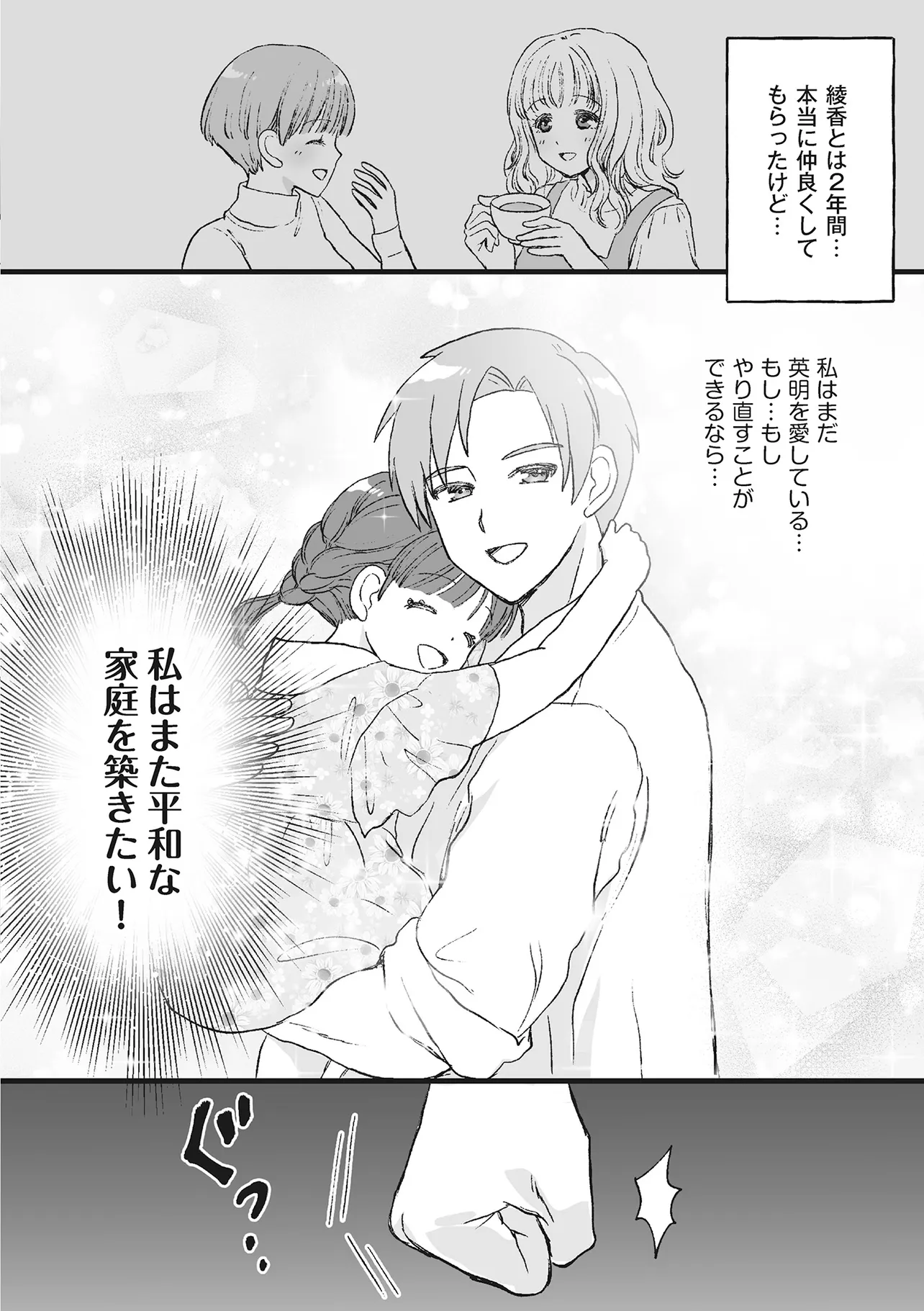 夏希は結婚して10年。夫・英明と5歳の娘・茜との三人暮らし。なんの不満もなく暮らしてきたある日、英明の浮気現場に遭遇した。