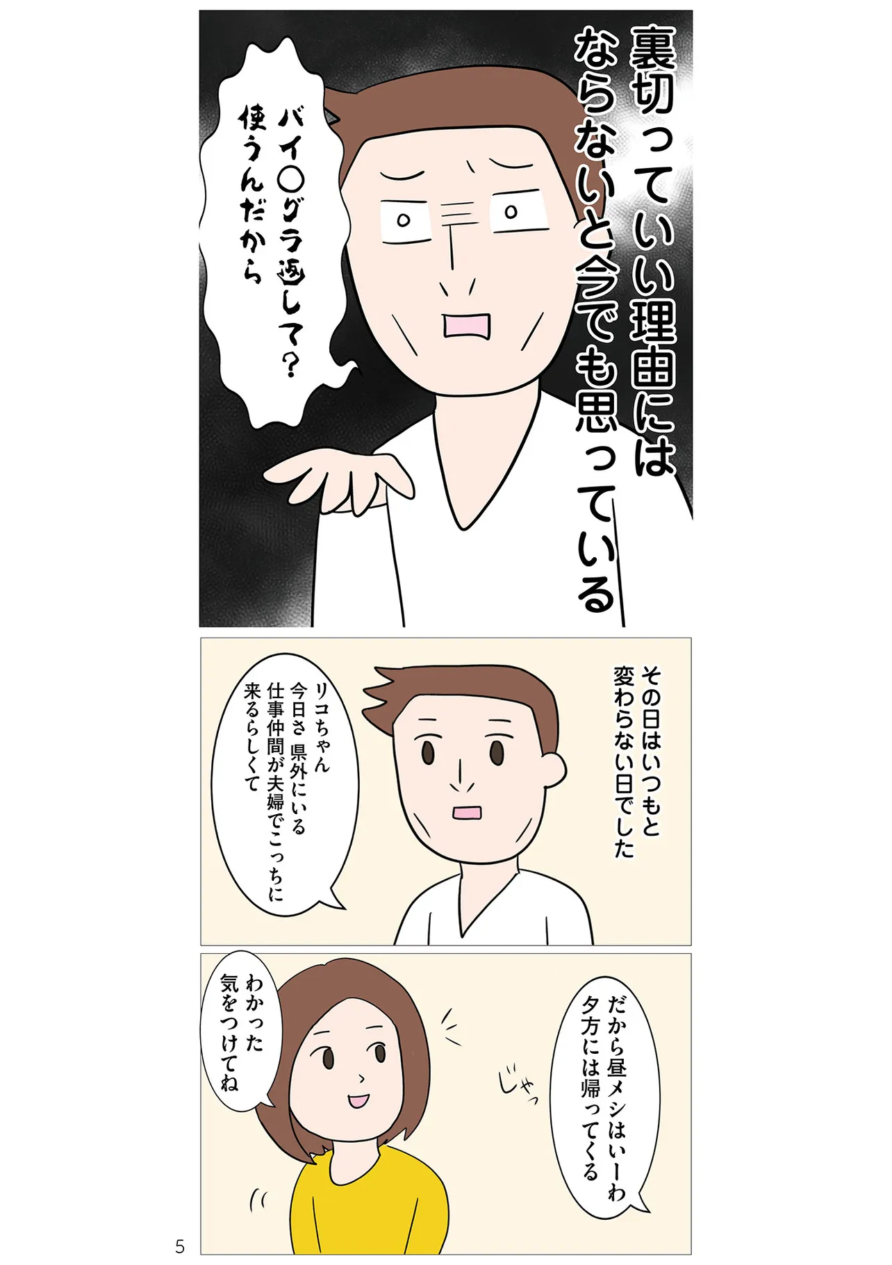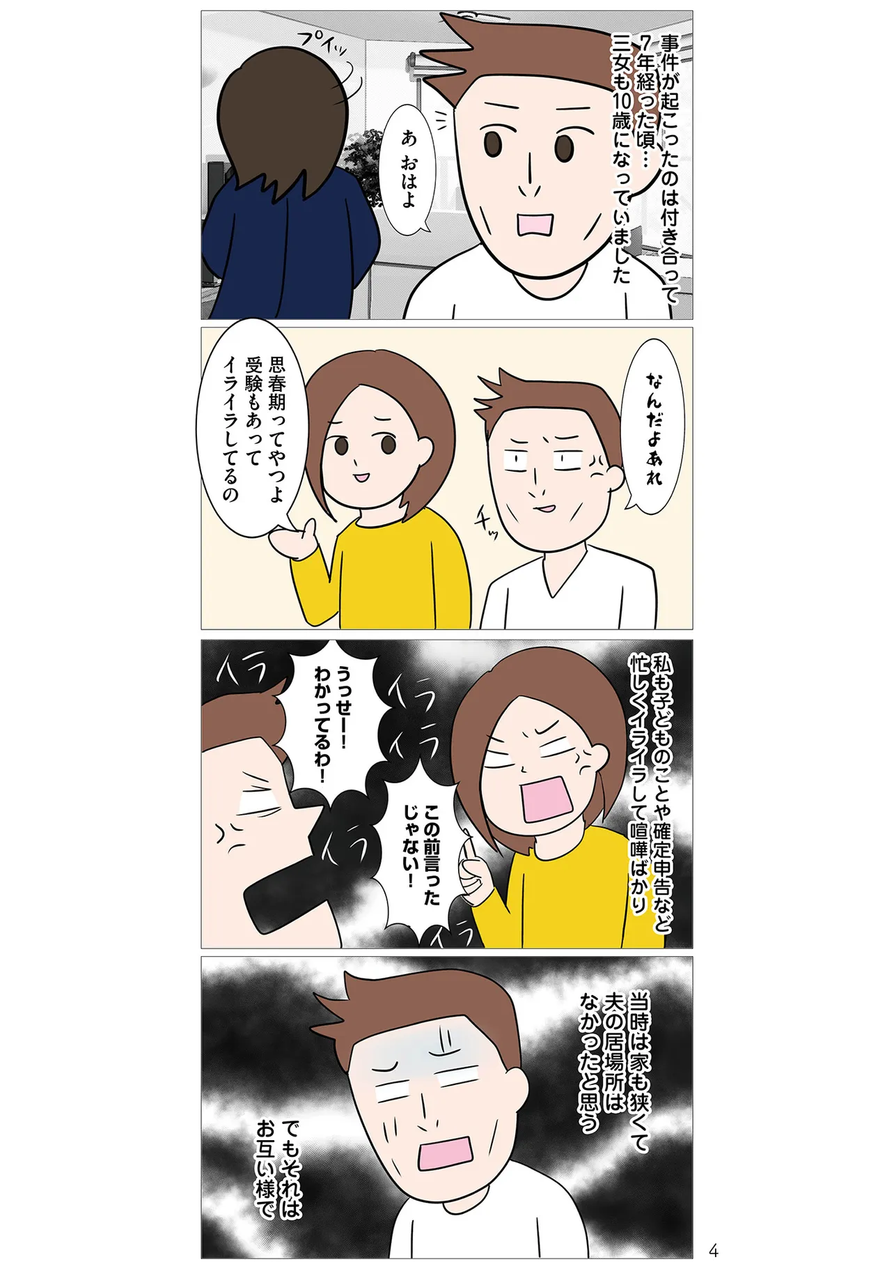 バツイチ・3人の子持ちのリコは付き合って7年目、事実婚の彼(バツイチ)がいる。一緒に暮らし、仕事でも彼の経営する会社の経理を引き受け、公私ともに良きパートナーとしてやってきた。…はずだったのだが、ある日を境に彼が変わっていく。彼の浮気が発覚して再構築を目指すものの、マッチングアプリで女遊び…。挙句の果てには最初の浮気相手が恐ろしいストーカーに! あまりにも自分勝手な彼、ストーカー女の恐怖、限界を感じたリコは別れる決心をするが、気がかりなことが。それは3歳から一緒に暮らしている末娘のこと。娘から彼を奪ってしまったら父親代わりがいなくなってしまう…。そこでリコが下した決断とは?