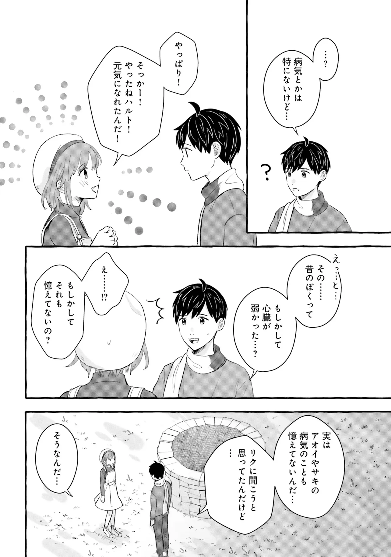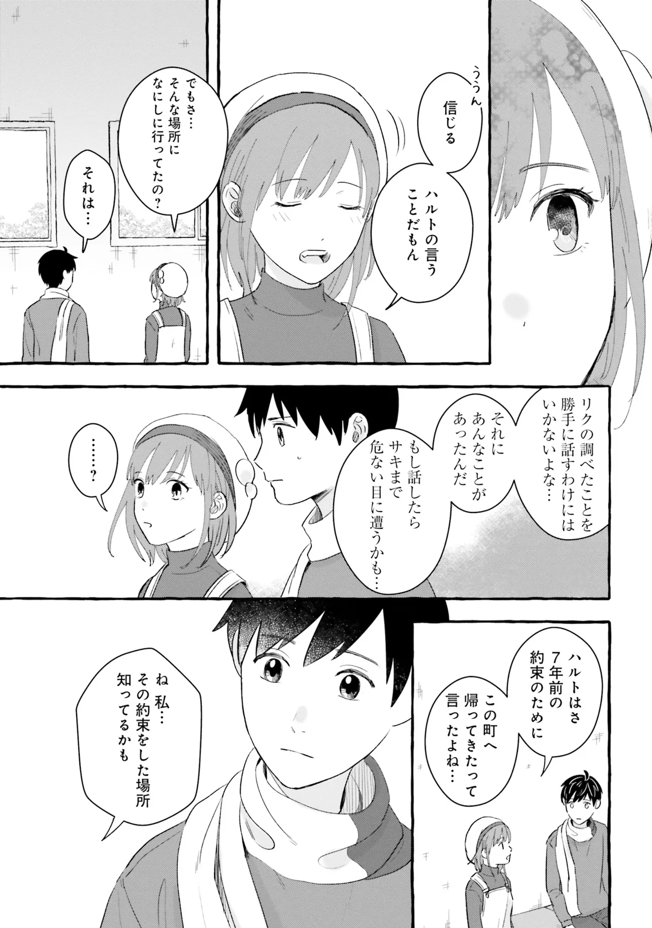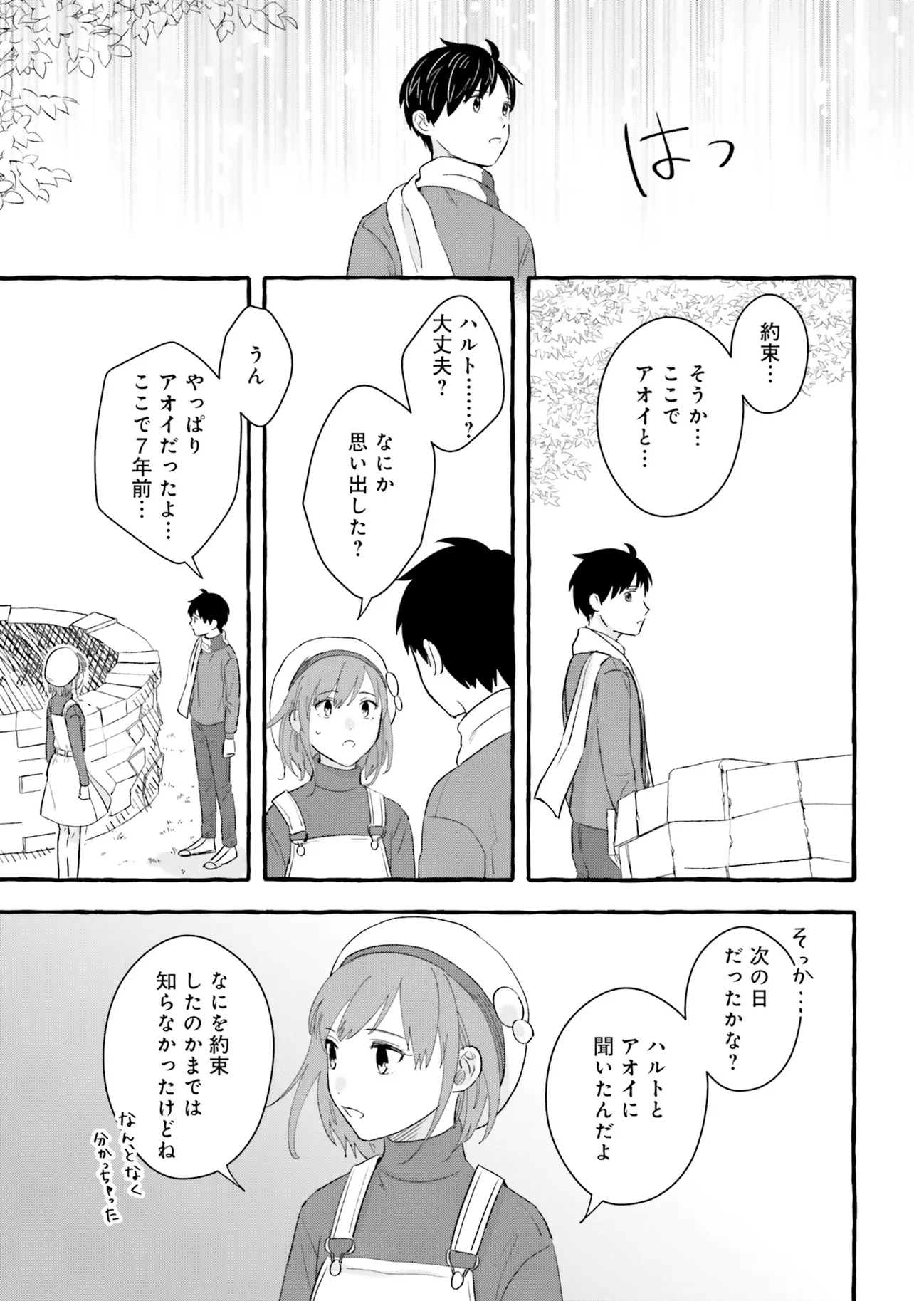 7年後で待ってる 第3話 7年後で待ってる 投稿者 admin - 4か月 前に 幸せな読書漫画 7年後で待ってる 第3話 , いいねと共有ボタンをクリックすることを忘れないでください. Manga 7年後で待ってる 常に更新されます 無料コミック Comic Top. 他のマンガの更新を読むことを忘れないでください。 マンガコレクションのリスト 無料コミック Comic Top マンガリストメニューにあります. お友達と共有しましょう! Facebook Twitter Pinterest Whatsapp 前のエピソード すべての章 次のエピソード リスト ページング Loading.. 前のエピソード すべての章 次のエピソード リスト ページング お友達と共有しましょう! Facebook Twitter Pinterest Whatsapp お気に入りに追加に続く 2 人 7年後で待ってる 失くした記憶のカケラを取り戻すため そして、あの日交わした約束を果たすため ぼくはこの街へ帰ってきた——。 600万超DLの大ヒットゲームがコミカライズ! これは、幼い頃の記憶を失ってしまった主人公"ハルト"が、 抜け落ちた自らの記憶とただ一つ残った「顔も名前も分からない少女との約束」を取り戻すための物語。 Fumi(原作)あるた梨沙(漫画) COMIC BRIDGEforgirlsゲームコミカライズファンタジー夢見る少女じゃいられない大人向け女性向け恋愛