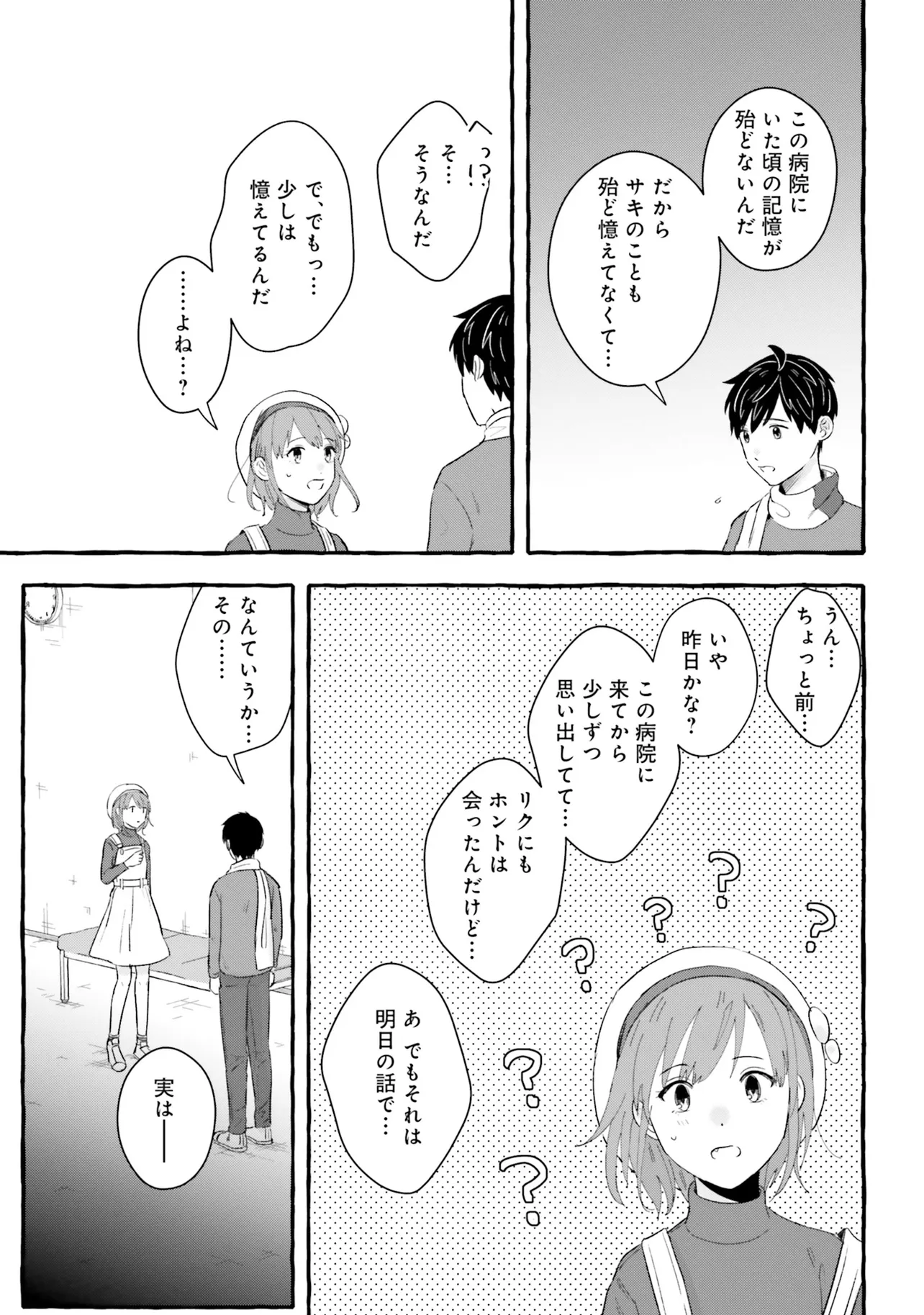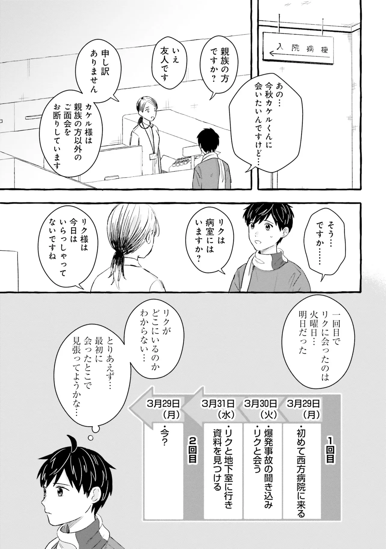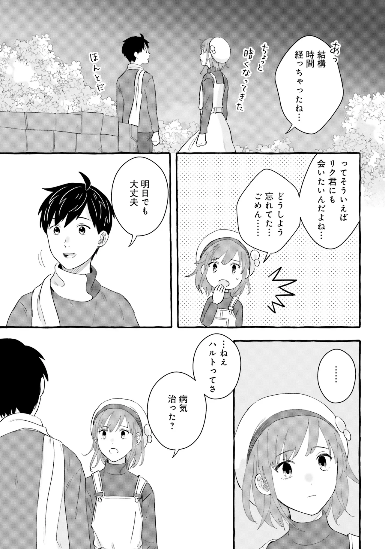 7年後で待ってる 第3話 7年後で待ってる 投稿者 admin - 4か月 前に 幸せな読書漫画 7年後で待ってる 第3話 , いいねと共有ボタンをクリックすることを忘れないでください. Manga 7年後で待ってる 常に更新されます 無料コミック Comic Top. 他のマンガの更新を読むことを忘れないでください。 マンガコレクションのリスト 無料コミック Comic Top マンガリストメニューにあります. お友達と共有しましょう! Facebook Twitter Pinterest Whatsapp 前のエピソード すべての章 次のエピソード リスト ページング Loading.. 前のエピソード すべての章 次のエピソード リスト ページング お友達と共有しましょう! Facebook Twitter Pinterest Whatsapp お気に入りに追加に続く 2 人 7年後で待ってる 失くした記憶のカケラを取り戻すため そして、あの日交わした約束を果たすため ぼくはこの街へ帰ってきた——。 600万超DLの大ヒットゲームがコミカライズ! これは、幼い頃の記憶を失ってしまった主人公"ハルト"が、 抜け落ちた自らの記憶とただ一つ残った「顔も名前も分からない少女との約束」を取り戻すための物語。 Fumi(原作)あるた梨沙(漫画) COMIC BRIDGEforgirlsゲームコミカライズファンタジー夢見る少女じゃいられない大人向け女性向け恋愛