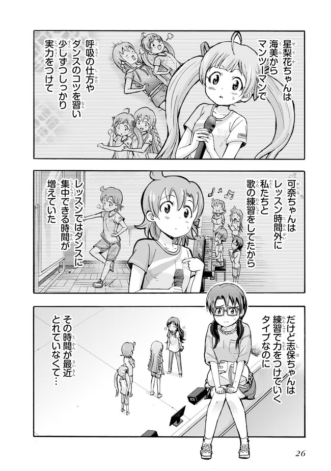 大人気コンテンツ『アイドルマスター ミリオンライブ!』の公式コミカライズ! 歌が大好きな14歳・矢吹可奈が、765プロライブ劇場に嵐を巻き起こす!? 「ミリオンスターズ」の個性豊かなアイドルたちが見せる、喜怒哀楽の表情と熱いストーリーをお楽しみください。