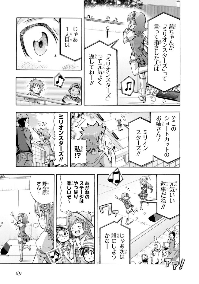 大人気コンテンツ『アイドルマスター ミリオンライブ!』の公式コミカライズ! 歌が大好きな14歳・矢吹可奈が、765プロライブ劇場に嵐を巻き起こす!? 「ミリオンスターズ」の個性豊かなアイドルたちが見せる、喜怒哀楽の表情と熱いストーリーをお楽しみください。