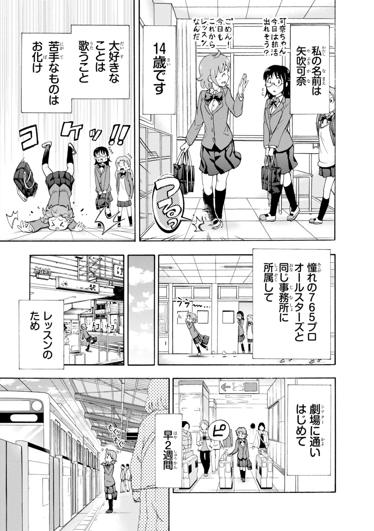 大人気コンテンツ『アイドルマスター ミリオンライブ!』の公式コミカライズ! 歌が大好きな14歳・矢吹可奈が、765プロライブ劇場に嵐を巻き起こす!? 「ミリオンスターズ」の個性豊かなアイドルたちが見せる、喜怒哀楽の表情と熱いストーリーをお楽しみください。