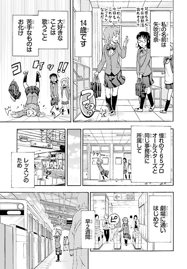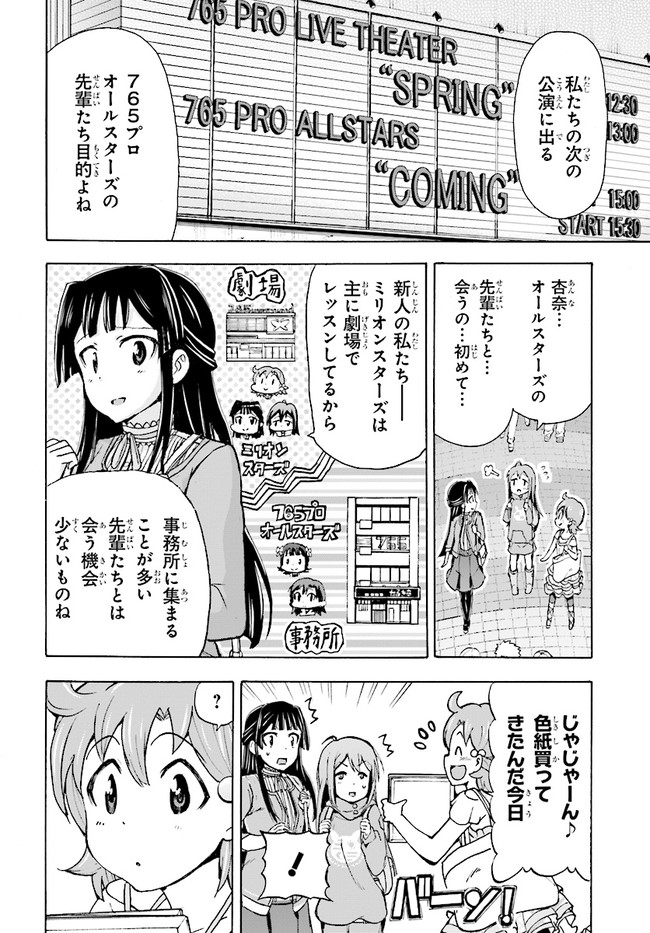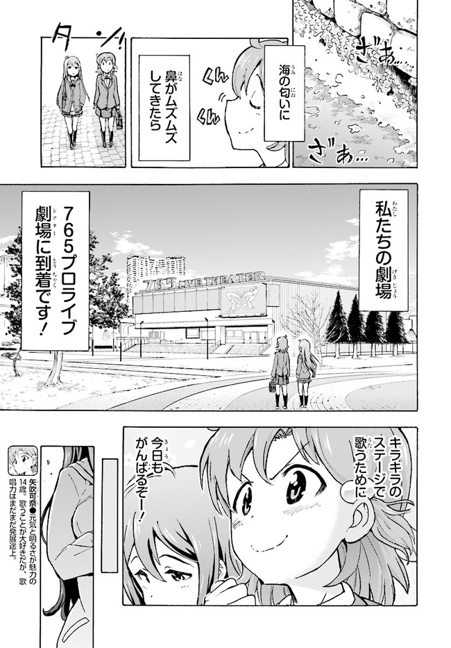 大人気コンテンツ『アイドルマスター ミリオンライブ!』の公式コミカライズ! 歌が大好きな14歳・矢吹可奈が、765プロライブ劇場に嵐を巻き起こす!? 「ミリオンスターズ」の個性豊かなアイドルたちが見せる、喜怒哀楽の表情と熱いストーリーをお楽しみください。