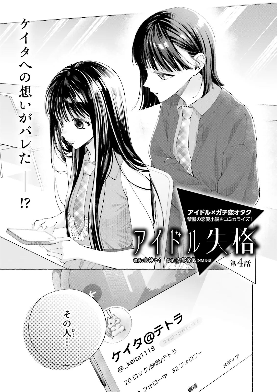 冴えない大学生のケイタは、アイドルグループ「テトラ」のセンター・実々花の“ガチ恋”オタク。叶わぬ恋だとわかりながらも、彼女を心の支えとして推し続けている。