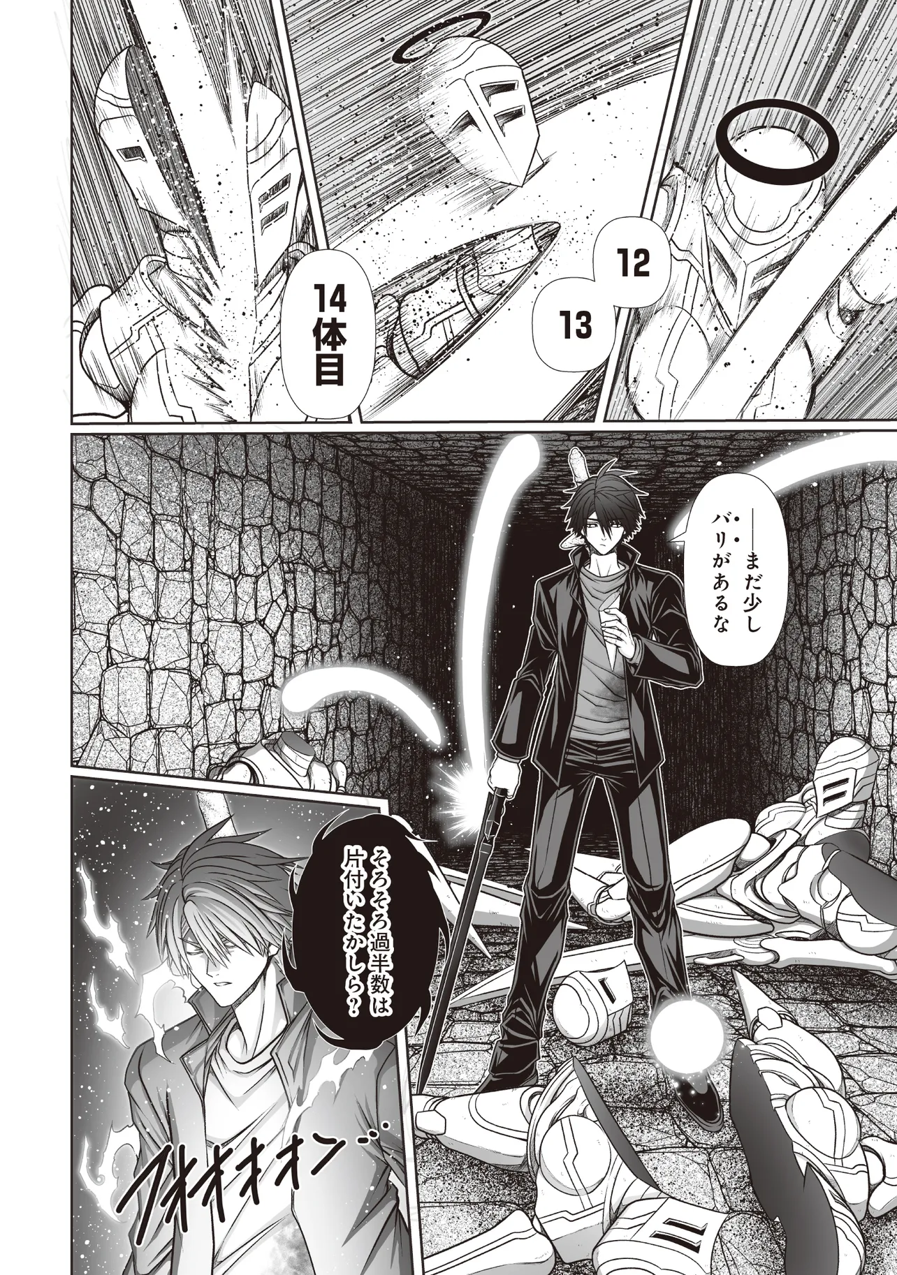 天獄の怪物たちを倒し、そのチカラを奪い取り、魔剣と自分自身を高めて行くジンヤ。