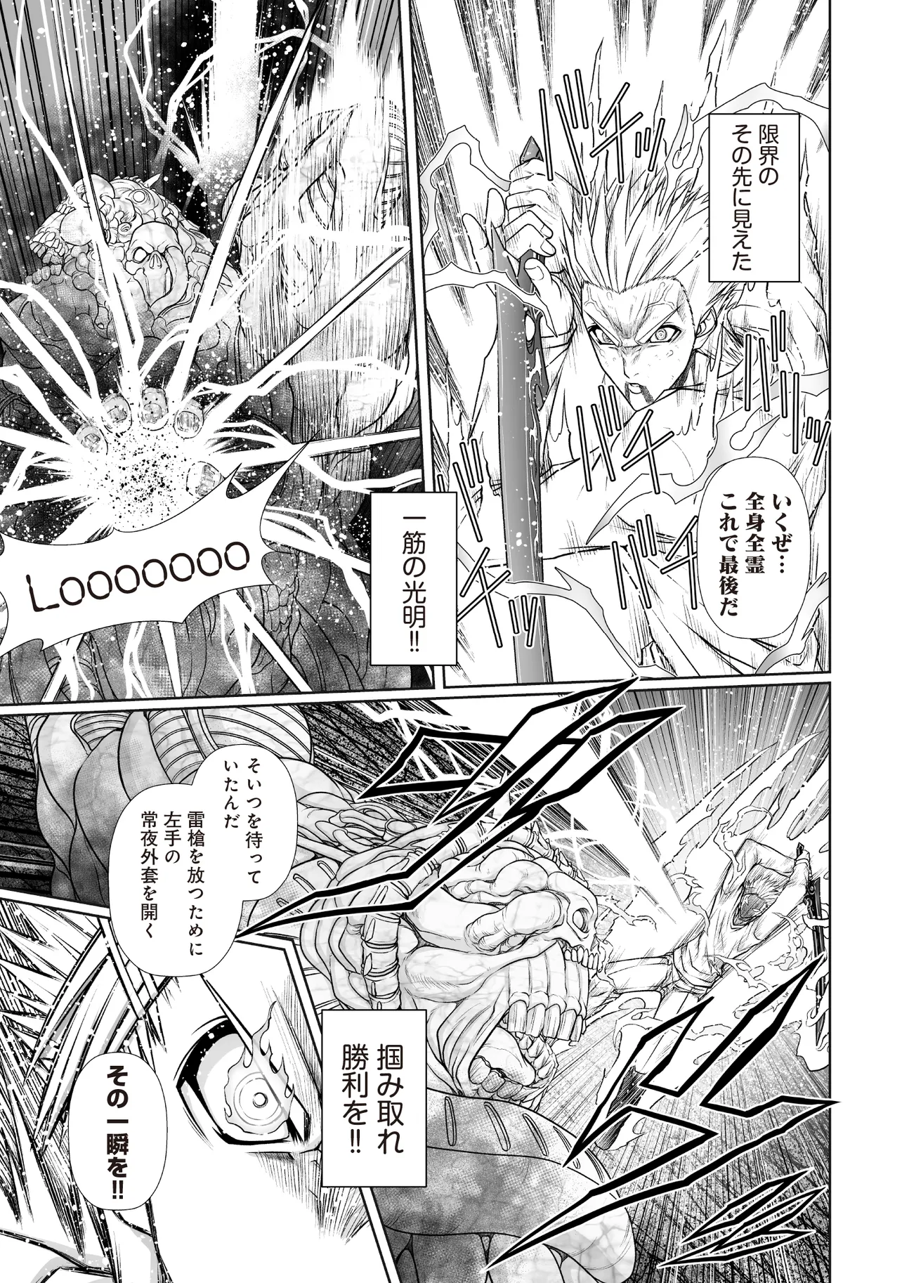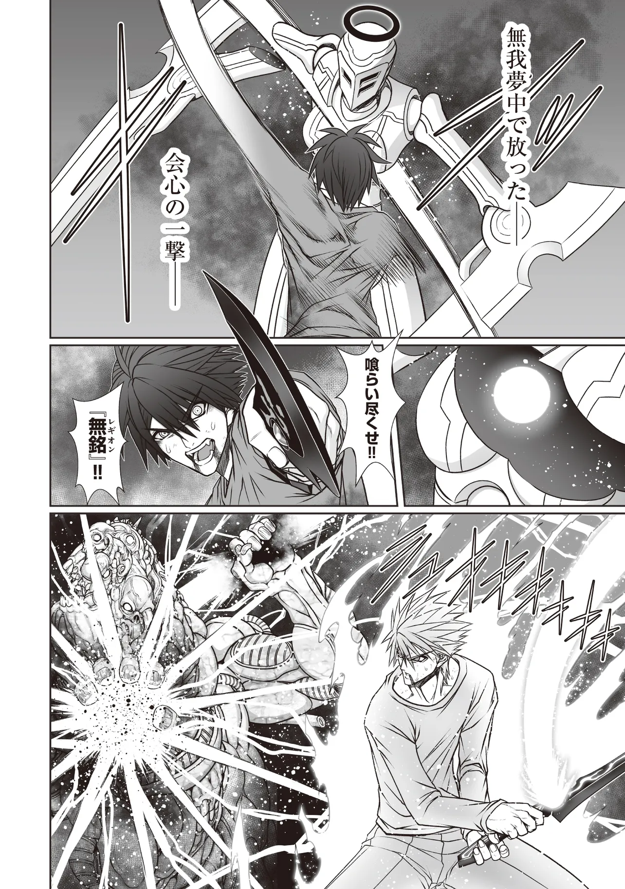 天獄の怪物たちを倒し、そのチカラを奪い取り、魔剣と自分自身を高めて行くジンヤ。