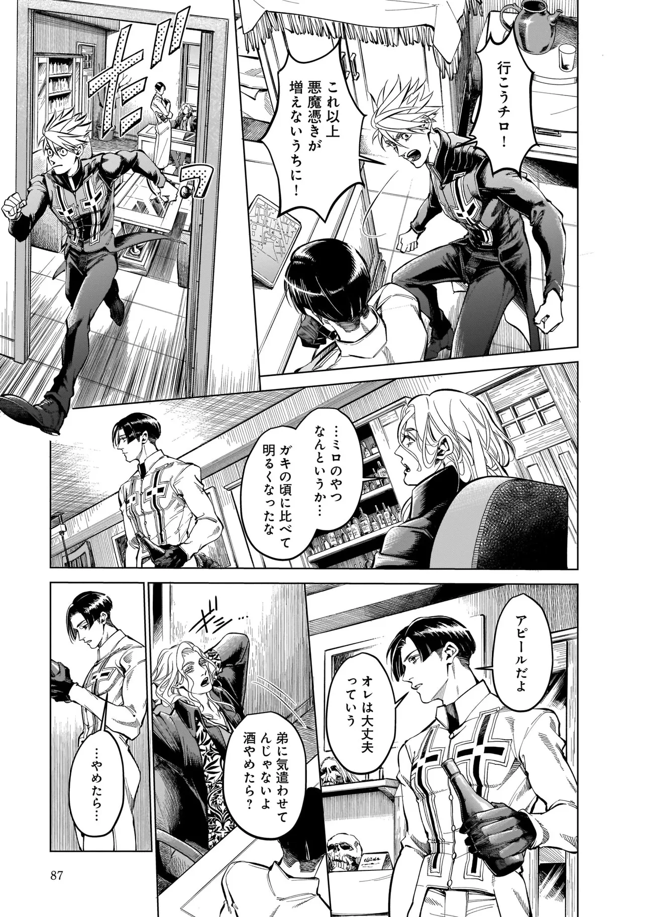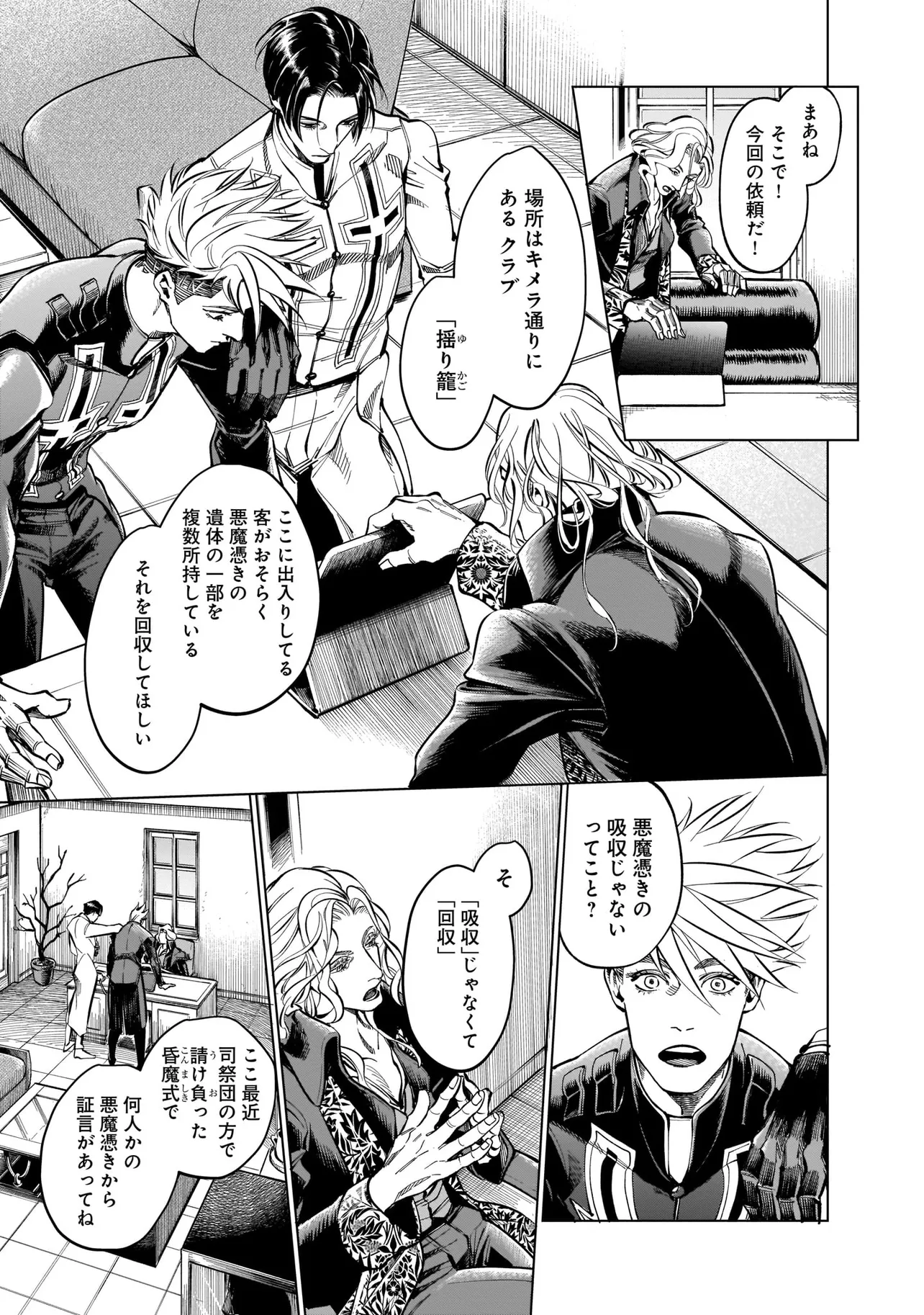 悪魔はゆりかごを唄う 第二章-第一節 悪魔はゆりかごを唄う 投稿者 admin - 11か月 前に 幸せな読書漫画 悪魔はゆりかごを唄う 第二章-第一節 , いいねと共有ボタンをクリックすることを忘れないでください. Manga 悪魔はゆりかごを唄う 常に更新されます 無料コミック Comic Top. 他のマンガの更新を読むことを忘れないでください。 マンガコレクションのリスト 無料コミック Comic Top マンガリストメニューにあります. お友達と共有しましょう! Facebook Twitter Pinterest Whatsapp 前のエピソード すべての章 次のエピソード リスト ページング Loading.. 前のエピソード すべての章 次のエピソード リスト ページング お友達と共有しましょう! Facebook Twitter Pinterest Whatsapp お気に入りに追加に続く 0 人 悪魔はゆりかごを唄う 未知のウイルス・通称「悪魔」にとり憑かれた人々を救うエクソシストのチッチ兄弟。恐怖によって伝染してしまうこの「悪魔」は、人から人へと移り続け、並のエクソシストでは根絶することができない。 しかし、バチカンの管轄から外れたはぐれエクソシストこの兄弟だけは別で――。 うめーち カッコいいダークドラマ人外友情・仲間現代異能力裏社会・アングラ