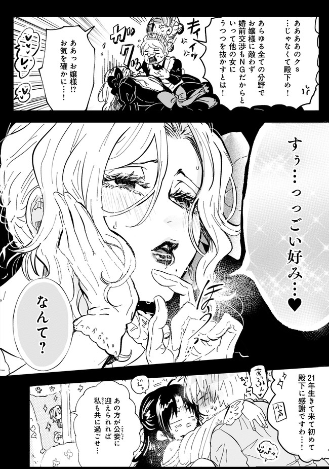 「たぁぁ~~っぷり可愛がって差し上げますわ」 これは“王子殿下”を捨てたふたりの真実の “愛”を描いた、ラブラブハッピー百合物語。 王子の悪名高き婚約者・アクヤ。 彼女が一目惚れしたのは、平民出身ながらに知恵と可愛さでのし上がってきたヒロイン・セイちゃん。 王子がアクヤとの婚約破棄を宣言した日、彼女はセイちゃんをエロエロできゅんきゅんな愛の言葉で口説こうとして‥‥‥。