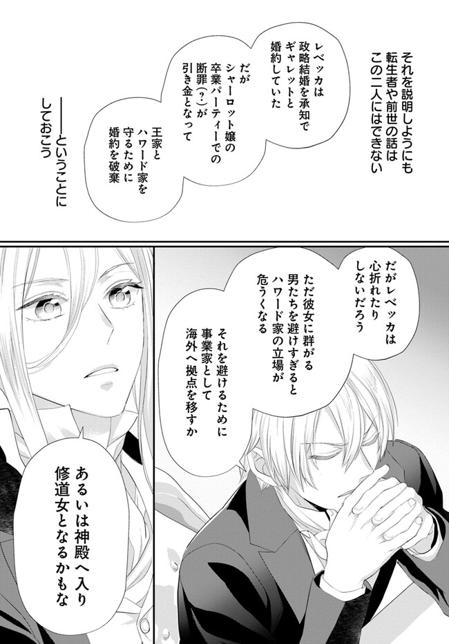 『月の姫』こと侯爵令嬢レベッカ・ハワードは卒業式前夜、前世を思い出した。どうやらここは、聖女候補の男爵令嬢シャーロット・シルバをヒロインとする『乙女ゲーム』の世界らしい。