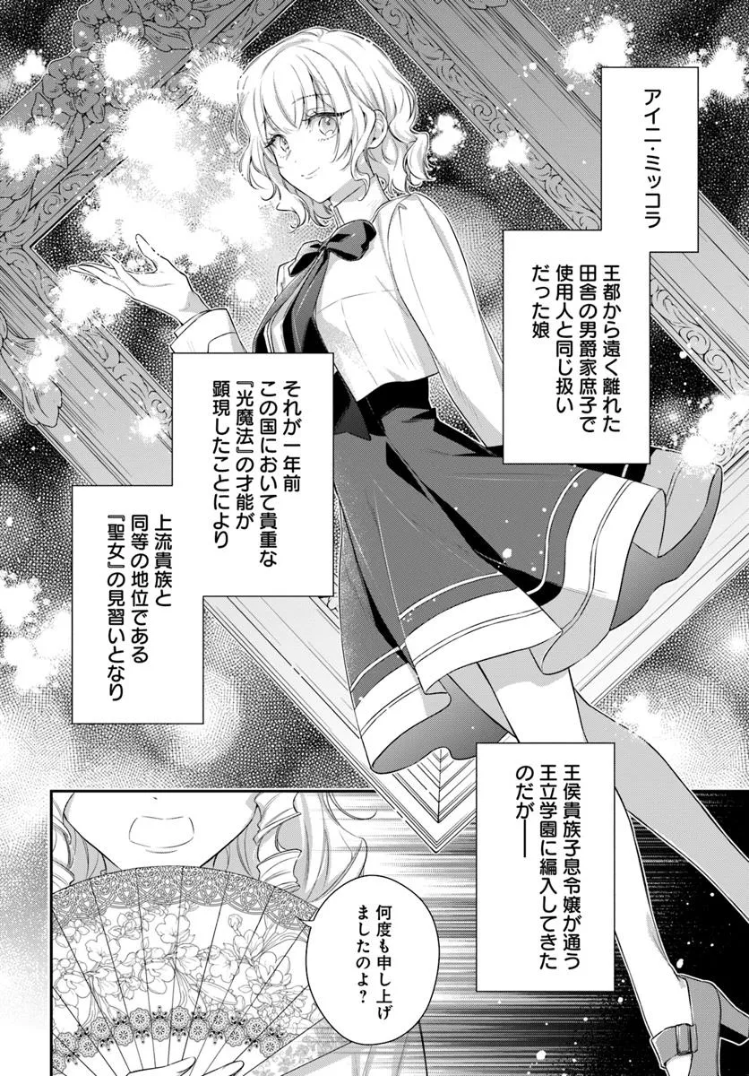 王立学園に聖女見習いの田舎男爵の庶子アイニ・ミッコラがやってきて半年。学園は混乱の極みにあった。貴族子息である男子生徒たちはアイニの無邪気で天然な可愛らしさに翻弄される一方、女子生徒たちはアイニの貴族マナーを無視した振る舞いに憤りを覚えていたからである。そんな中、巷で流行の物語になぞらえて「悪役令嬢」と呼ばれることになった三人の令嬢がいた。王太子の婚約者で清廉な侯爵令嬢セラフィーナ。商売で裕福な子爵家の気高き令嬢サンドラ。現宰相の侯爵家の聡明な令嬢ベルナルデッタ。いつしか学園内に不穏な空気が漂い始めた時、彼女たちがついに立ち上がる! アイニの間違いを正し、自らの心のままに進むために。