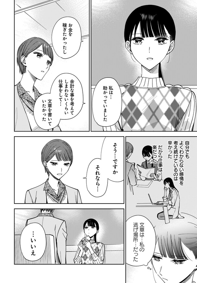 姉の親友、私の恋人。 第14話① 姉の親友、私の恋人。 投稿者 admin - 3年 前に 幸せな読書漫画 姉の親友、私の恋人。 第14話① , いいねと共有ボタンをクリックすることを忘れないでください. Manga 姉の親友、私の恋人。 常に更新されます 無料コミック Comic Top. 他のマンガの更新を読むことを忘れないでください。 マンガコレクションのリスト 無料コミック Comic Top マンガリストメニューにあります. お友達と共有しましょう! Facebook Twitter Pinterest Whatsapp 前のエピソード すべての章 次のエピソード リスト ページング Loading.. 前のエピソード すべての章 次のエピソード リスト ページング お友達と共有しましょう! Facebook Twitter Pinterest Whatsapp お気に入りに追加に続く 4 人 姉の親友、私の恋人。 小説家である聖奈は、実の姉である優奈に恋愛感情のようなものを抱えていた。 姉が離れて「喪失感」に耐え切れなくなったことにより、小説が書けなくなった。 姉からのメッセージすら応えられずにいた。 まともな生活すらままならない聖奈を、姉の親友である菊がしつこく世話を焼きに訪ねてくる。 聖奈は、菊のことを苦手だと思いながらも、つい流されてしまう。 そんな菊にも、抱える感情があった――。 二人の成人女性が抱える恋のお話。 コミックス1巻12月25日発売! 藤松盟(著者) BOOK☆WALKERでセール中!!姉妹恋愛百合