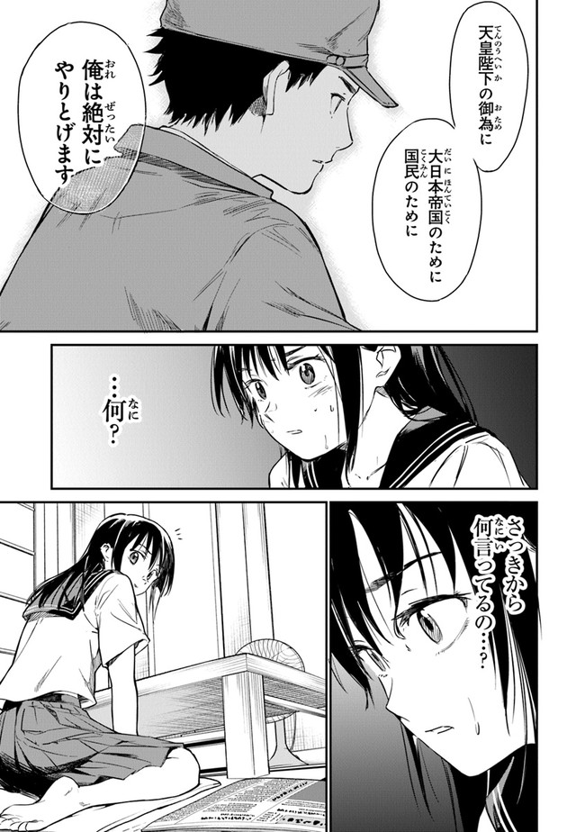 TikTokで超話題となった感動のタイムリープ小説が待望のコミカライズ! 変わらない日常にいら立ちを募らせる中学2年生の少女・加納百合は、ある日、母親と喧嘩をして家を飛び出してしまう。翌朝、近所の裏山の防空壕で一夜を過ごした百合の目に飛び込んできた光景とは!? 現代の孤独な少女と特攻隊員が出会った奇跡──。