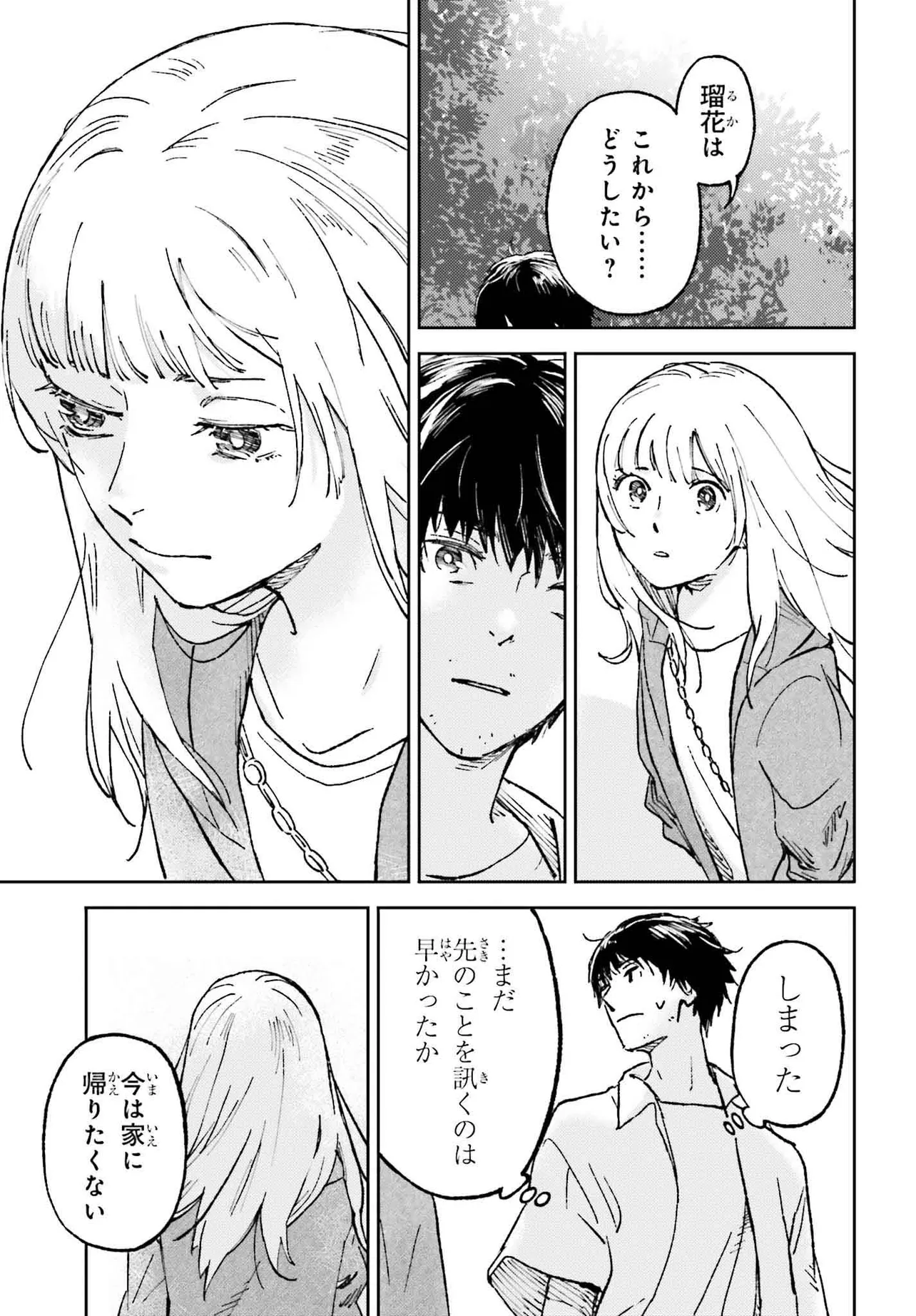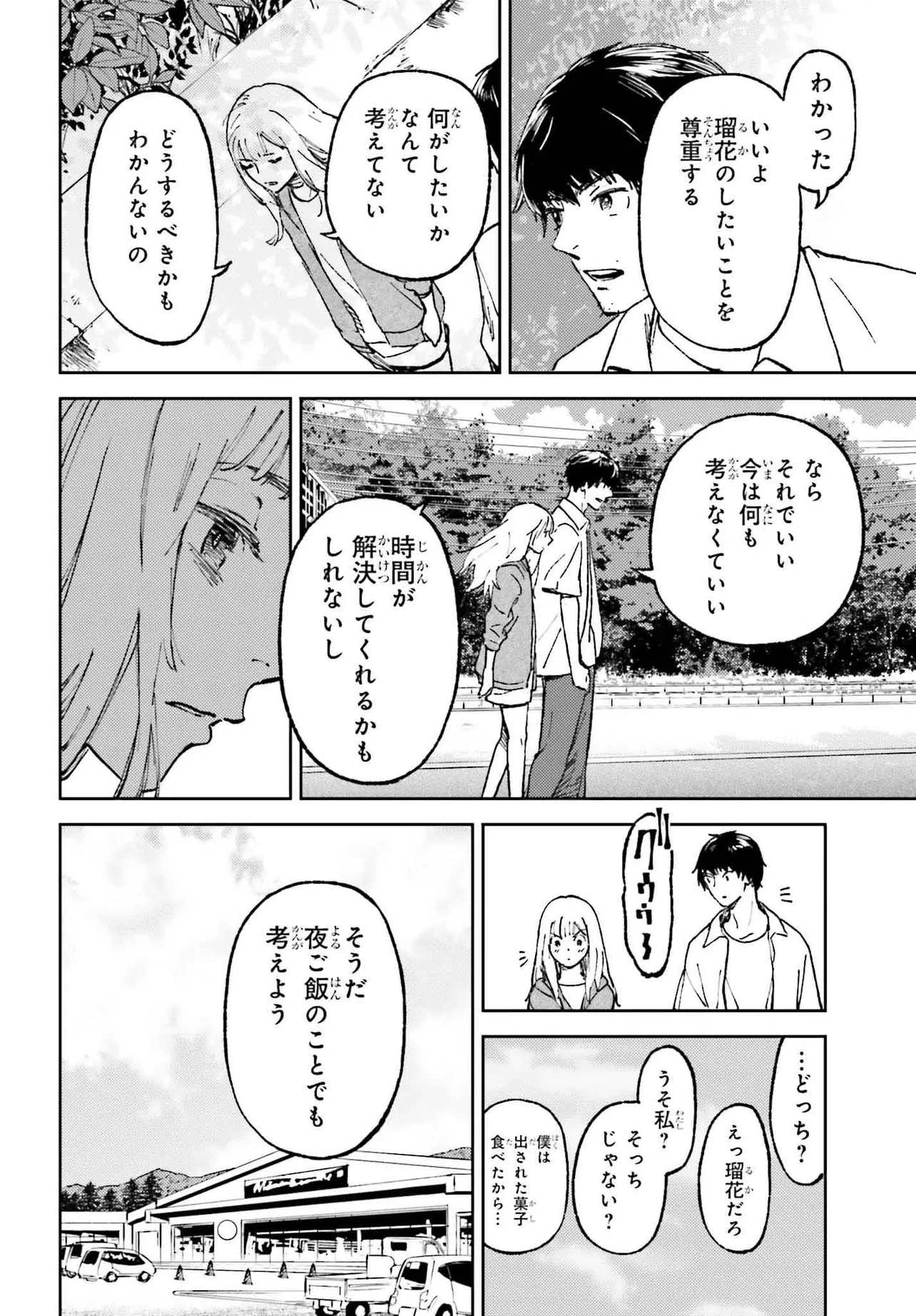 「どこか遠いところに行って死ぬ」と口にする流花に対し、千尋は「僕も連れてって」と二人きりの逃避行の旅に出る。