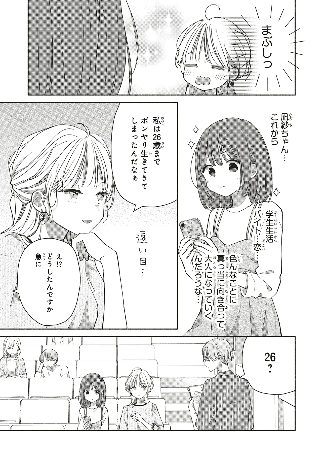 26歳、女性、社会人歴8年。地方在住、実家暮らし。突然職を失い、”自分探し”という名の4年間のモラトリアム目当てで東京で大学生に。 そこで彼女を待っていたのは、謎めいたハタチ男子(東京生まれ東京育ち、ラブホバイト)との恋……?だった。 「ずるずる大人になった」すべての人へ贈る、恋と青春の物語。