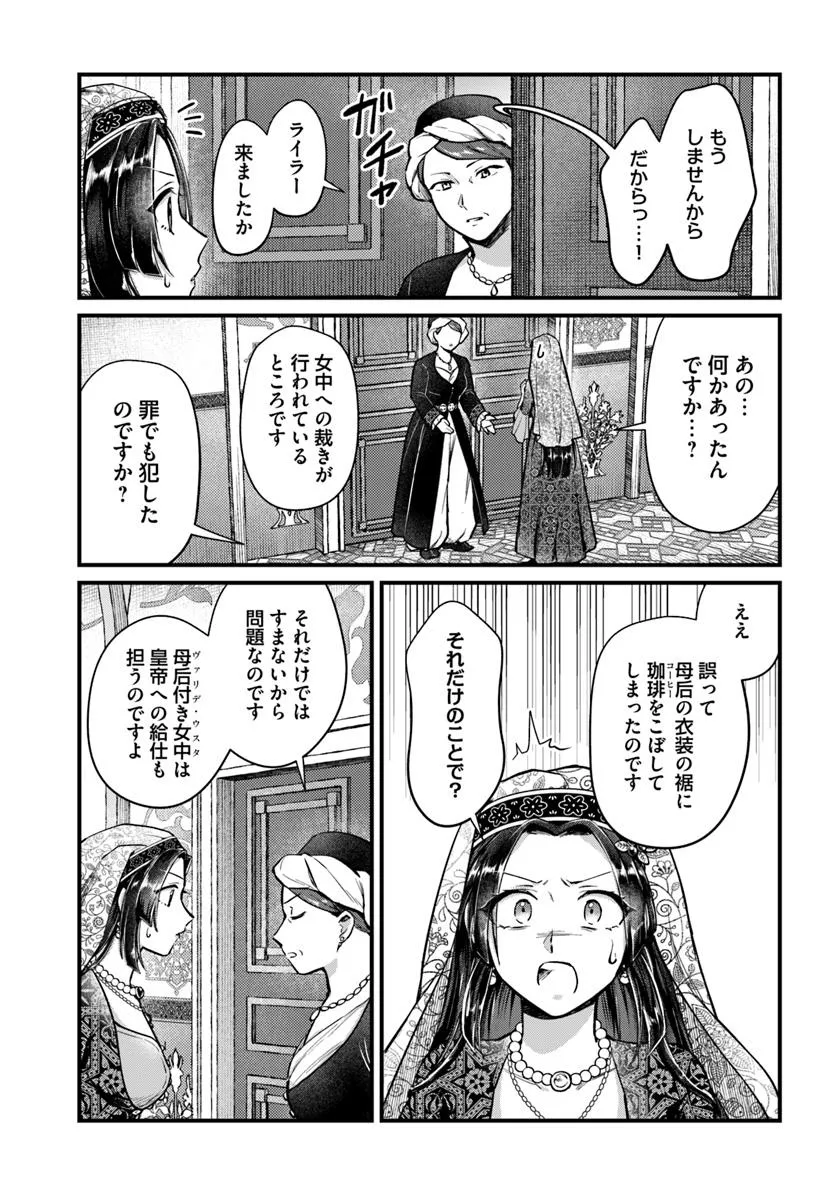 後の世に伝説として語られる妃、ライラーは、元々和国の姫君。謀略で捕われダリル帝国の後宮(ハレム)に入れられた。しかしこの後宮では子を産まず数年経てば解放される道が! 彼女は希望を得て、皇帝(スルタン)に近づかず、年季明けを目指すと決意する。 だがさっそく皇后に試されたり、高慢な妃候補に挑発されたり。ライラーはいくつもの窮地を両親に鍛えられた聡明さと生来の明るさを発揮して乗り越えていく。しだいに周囲から慕われ、賢明な統治者としての片鱗すら垣間見せ……。 けれどその結果ーーなんで逆に成り上がって寵姫扱いされてるの!?