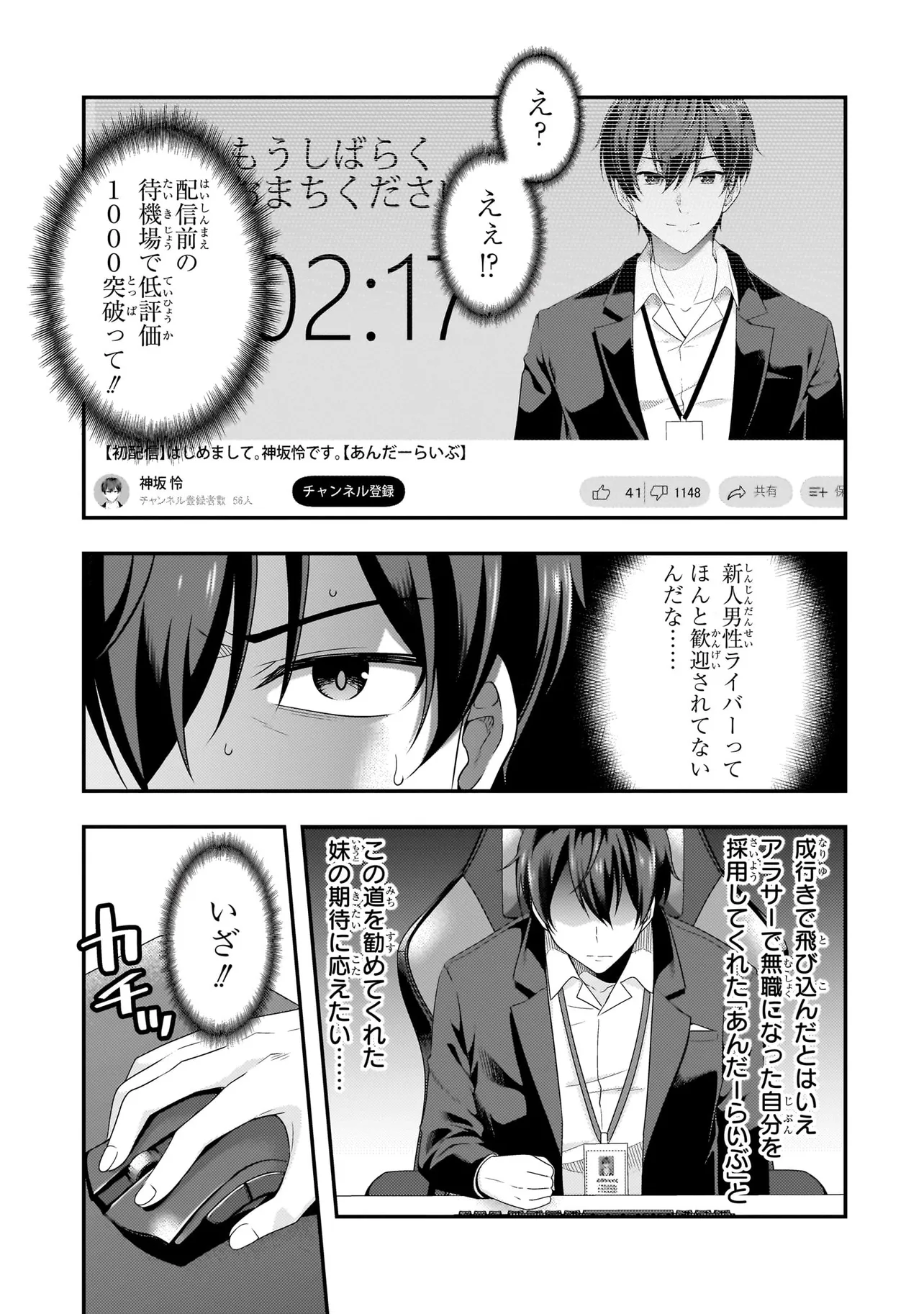 突然だけれども退職しました。そして突然だけれどもVTuberデビューを目指すことになりました。ブラック企業を辞めたアラサーの俺はなぜか妹に唆されるままに、バーチャルタレント企業「あんだーらいぶ」所属のVTuber神坂怜となっていた。けれど女性ばかりの「あんだーらいぶ」の中では、男性Vというだけで視聴者から叩かれてしまう。しかもデビュー2日目には同期が炎上&解雇されてしまい……!?