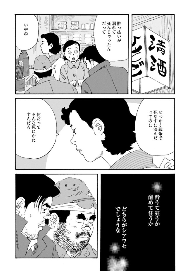第23回手塚治虫文化賞[新生賞] 第48回日本漫画家協会賞[大賞]W受賞! 敗戦直後の東京。心に闇を抱えた元陸軍軍曹の川島徳太郎は、闇市で雑炊屋を営みながら酒浸りの日々を送っていた。ある日、軍隊時代の部下である黒田門松と再会し……。誰もが消えない傷を背負った時代の"生"と"性"を鮮やかに描いた焼け跡ブロマンス。