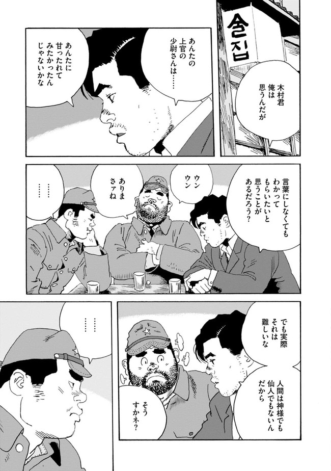 第23回手塚治虫文化賞[新生賞] 第48回日本漫画家協会賞[大賞]W受賞! 敗戦直後の東京。心に闇を抱えた元陸軍軍曹の川島徳太郎は、闇市で雑炊屋を営みながら酒浸りの日々を送っていた。ある日、軍隊時代の部下である黒田門松と再会し……。誰もが消えない傷を背負った時代の"生"と"性"を鮮やかに描いた焼け跡ブロマンス。