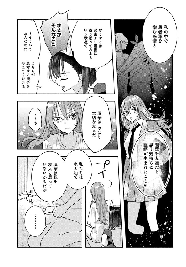 明日もまた勇者のとなり 第12話 明日もまた勇者のとなり 投稿者 admin - 2年 前に 幸せな読書漫画 明日もまた勇者のとなり 第12話 , いいねと共有ボタンをクリックすることを忘れないでください. Manga 明日もまた勇者のとなり 常に更新されます 無料コミック Comic Top. 他のマンガの更新を読むことを忘れないでください。 マンガコレクションのリスト 無料コミック Comic Top マンガリストメニューにあります. お友達と共有しましょう! Facebook Twitter Pinterest Whatsapp 前のエピソード すべての章 次のエピソード リスト ページング Loading.. 前のエピソード すべての章 次のエピソード リスト ページング お友達と共有しましょう! Facebook Twitter Pinterest Whatsapp お気に入りに追加に続く 1 人 明日もまた勇者のとなり 隣の席の同級生・百宮奏が気になってしかたがない黒瀬真緒。 その気持ちに整理がつかないままに知ったのは、魔王である自分が勇者を殺した瞬間の記憶。 そして、その勇者は百宮と同じ顔をしていて――。 時を超えて繰り広げられるガールズストーリーが登場! 梶井スパナ(著者) ガールズラブ学園百合転生
