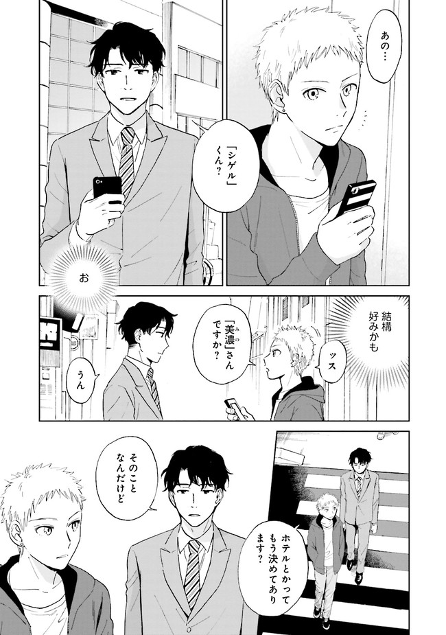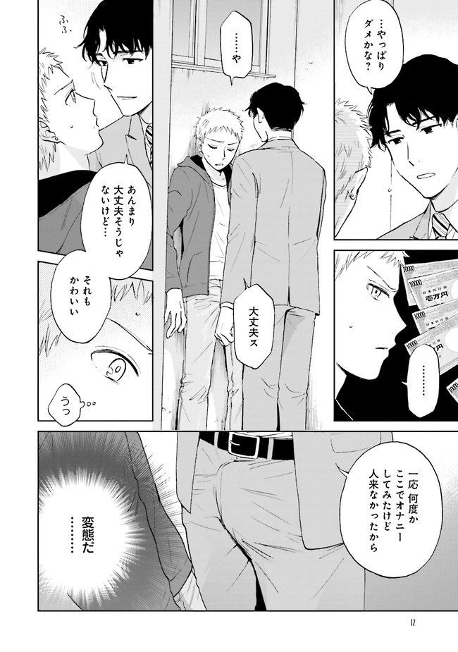デリボーイのシゲルとの待ち合わせに来たのはエリートサラリーマンの美濃。比較的好みな容姿のうえ柔和な雰囲気の美濃に期待していたシゲルだったが、実は「アオカン」でしかイけないという変態で──!?