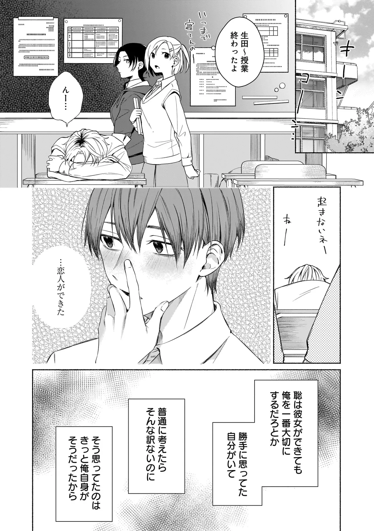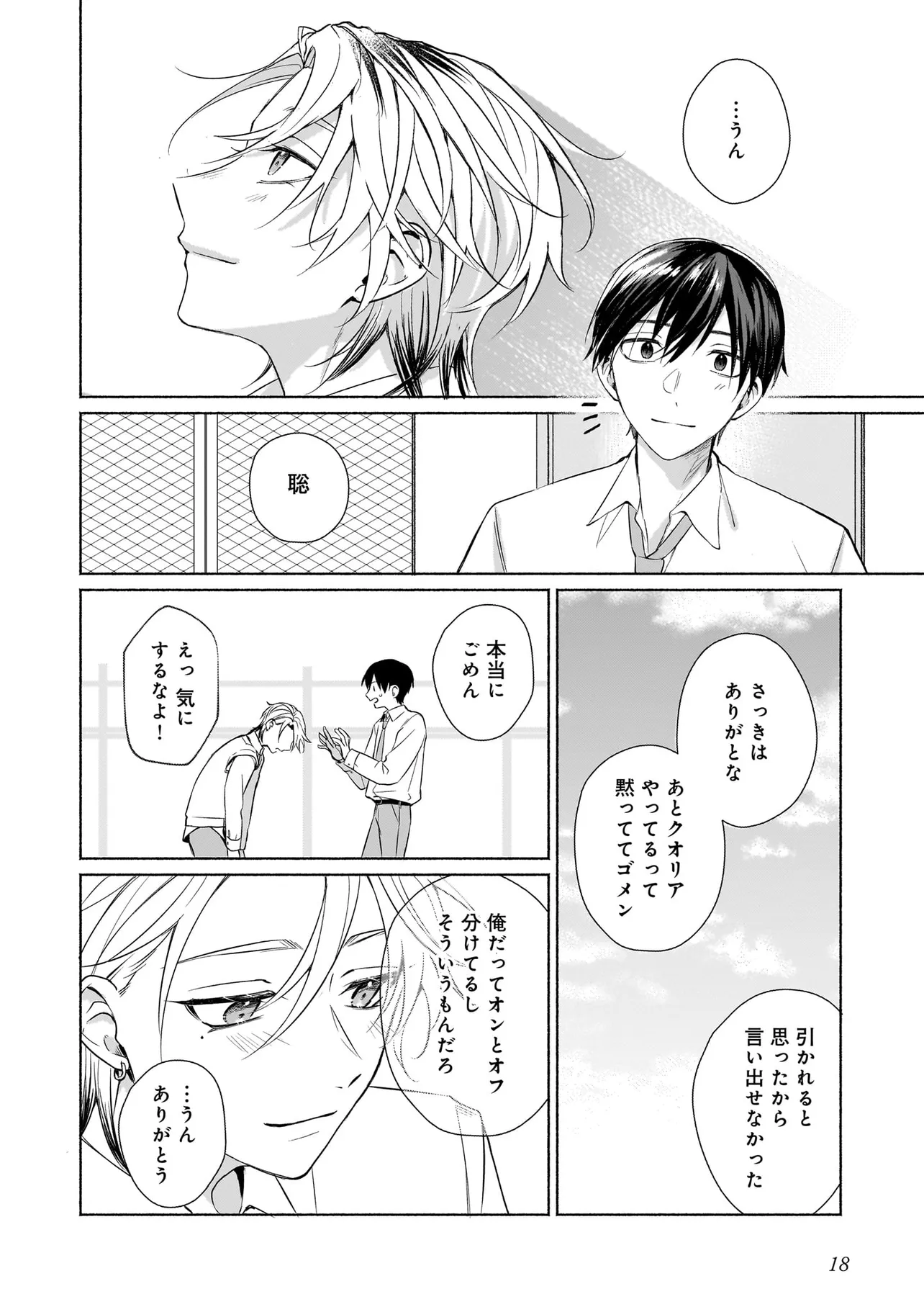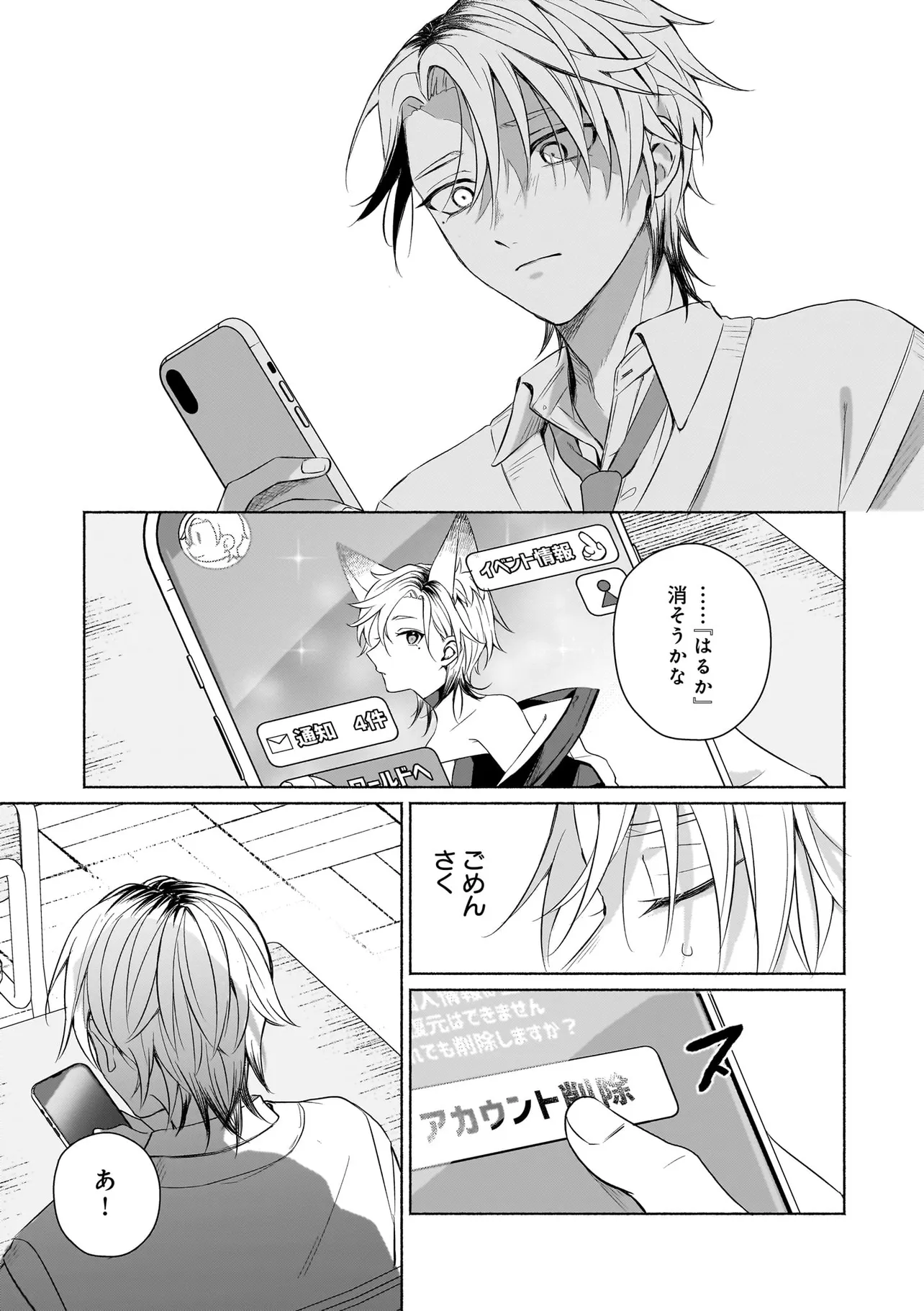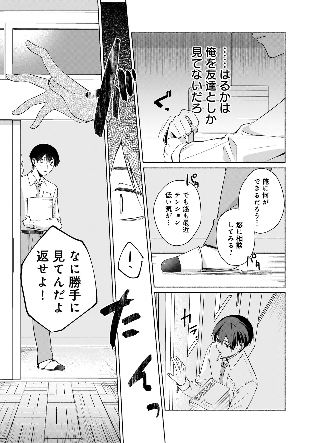 幼馴染の悠はモテ男として有名だったが、聡は童貞。なんとなく悔しい思いをクオリア仲間の「はるか」(女アバターで中身は男)に打ち明けたところ、「男同士だしお試しで付き合ってみる?」と持ち掛けられる。しかし実は「はるか」の正体は幼馴染の悠で…。