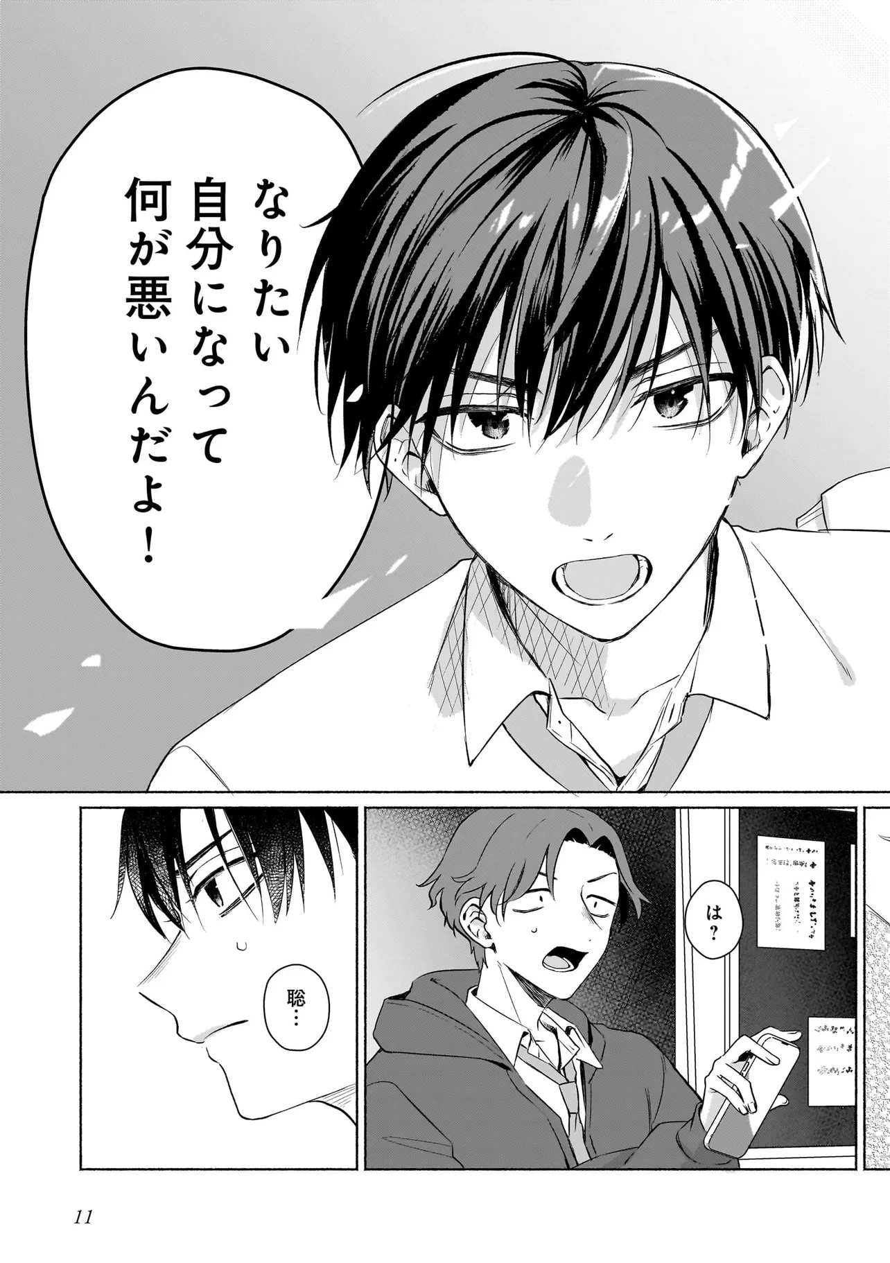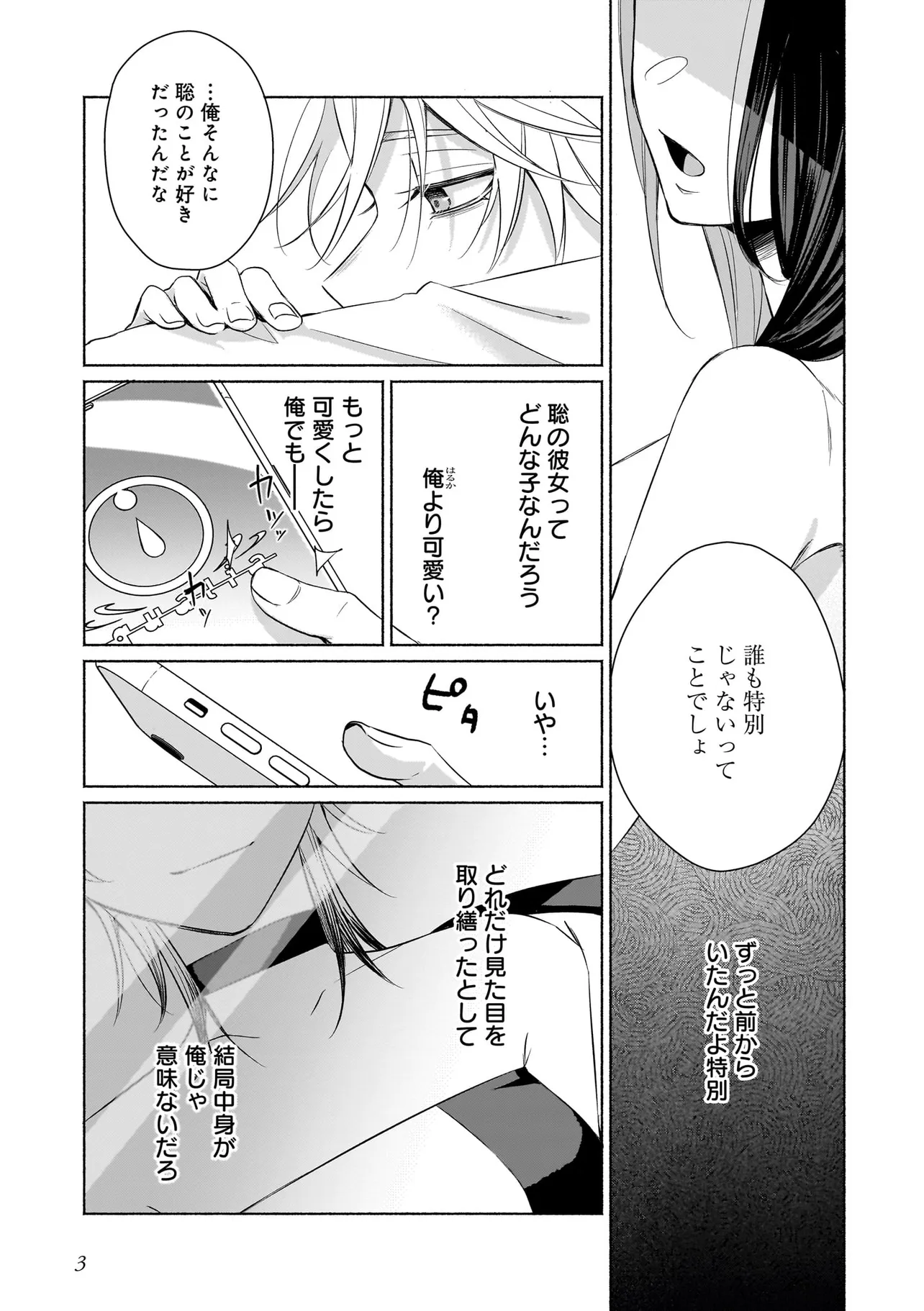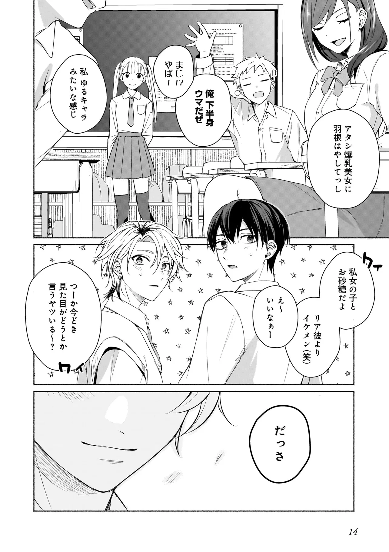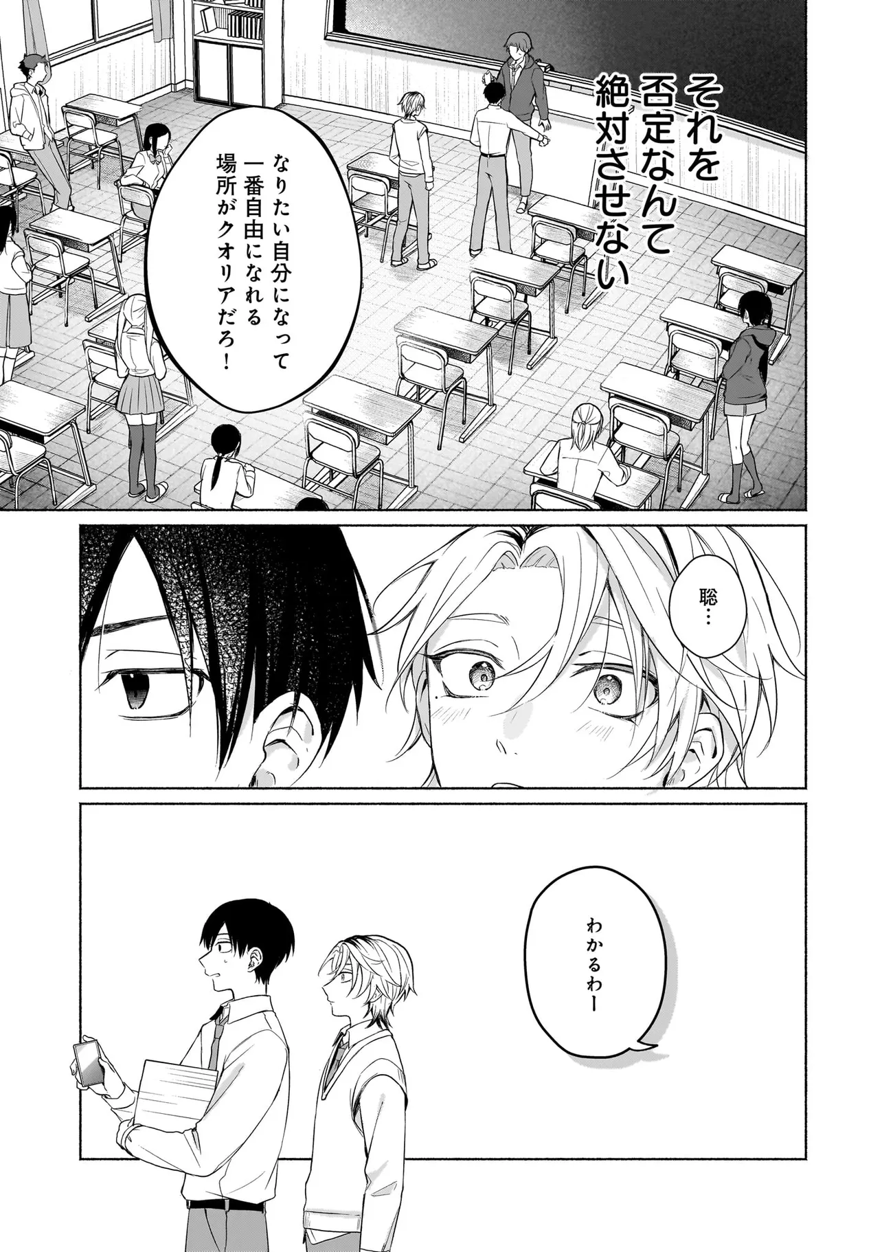 幼馴染の悠はモテ男として有名だったが、聡は童貞。なんとなく悔しい思いをクオリア仲間の「はるか」(女アバターで中身は男)に打ち明けたところ、「男同士だしお試しで付き合ってみる?」と持ち掛けられる。しかし実は「はるか」の正体は幼馴染の悠で…。