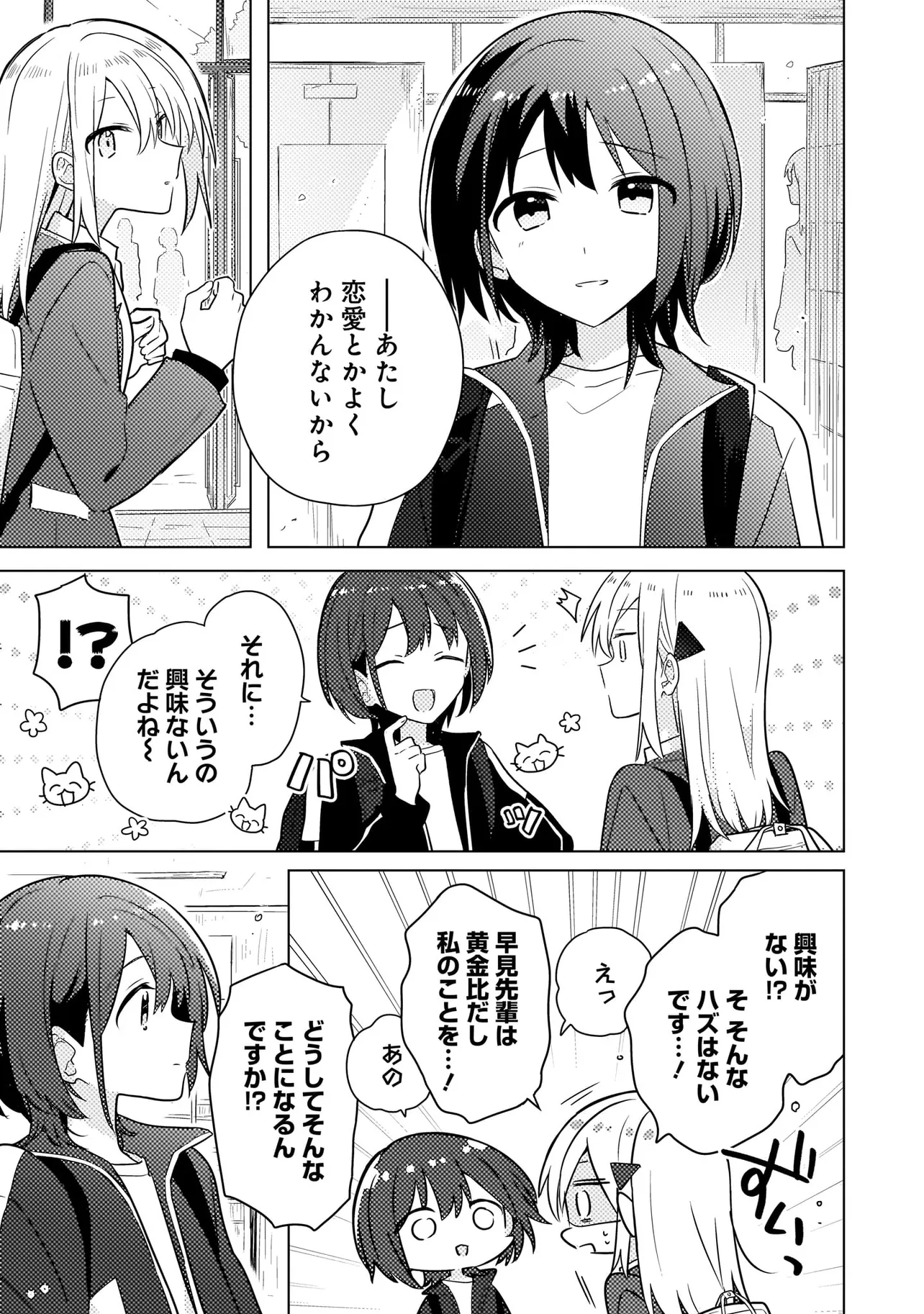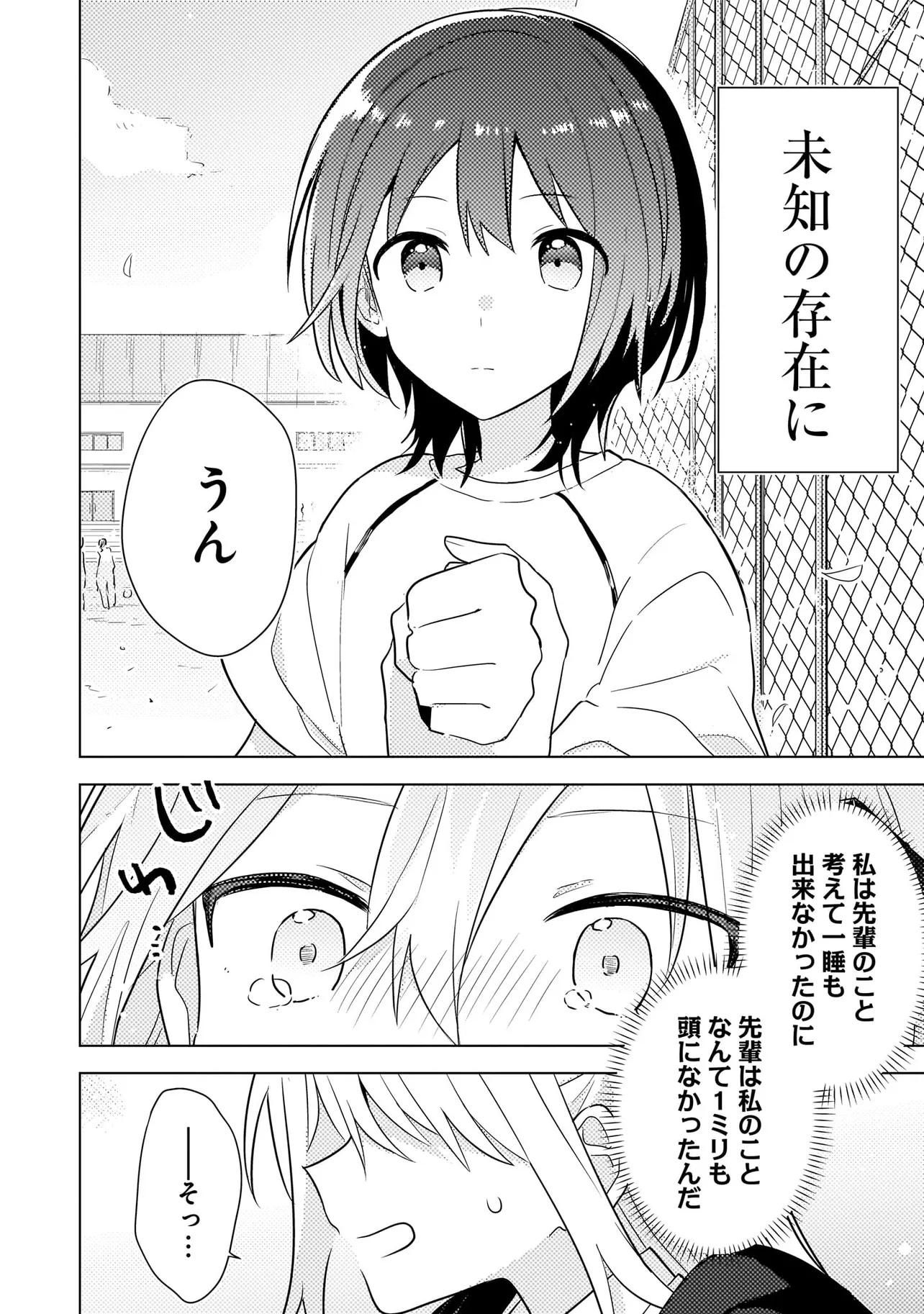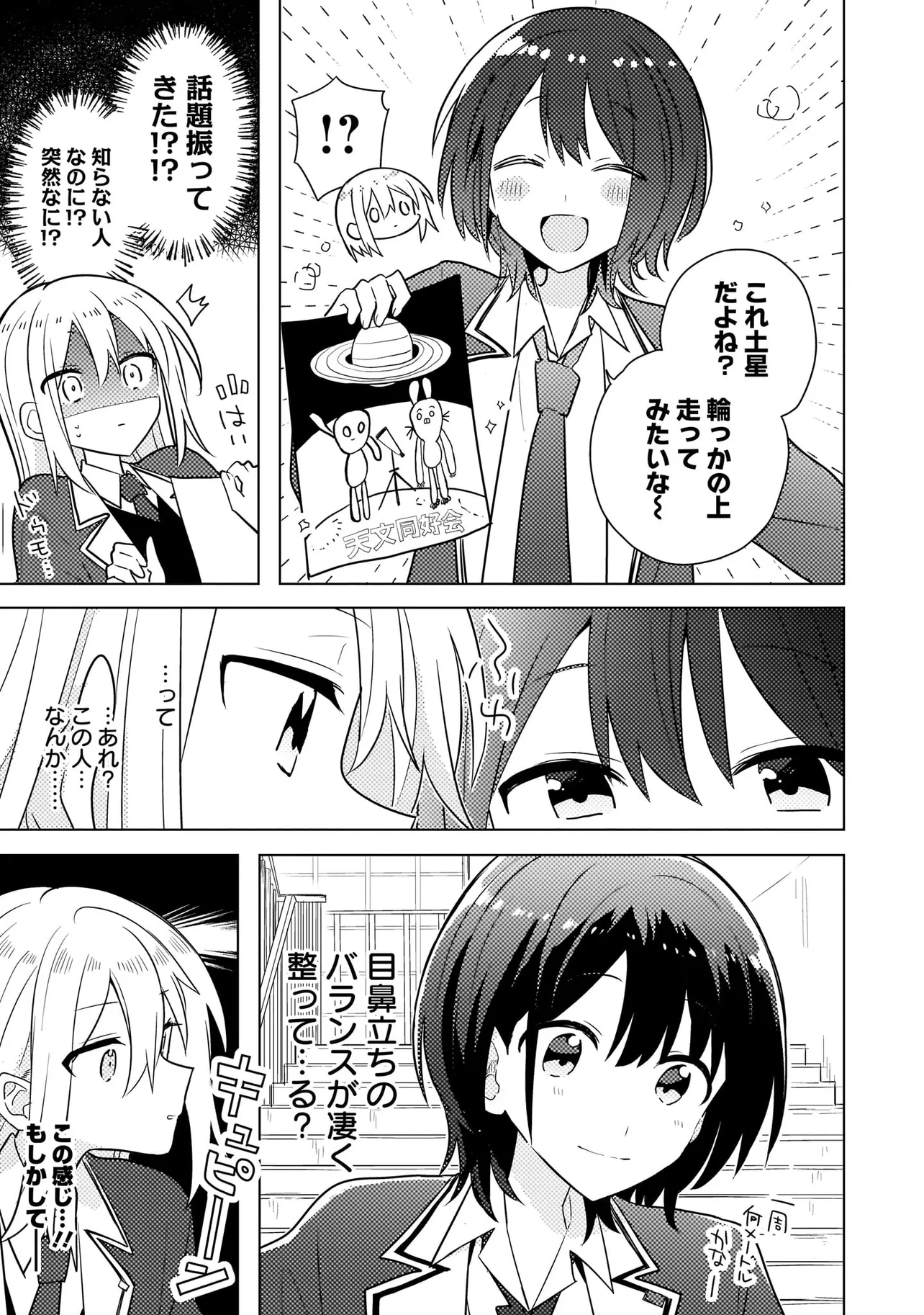 『宇宙人に会いたい』そんな大きな夢を抱く宇宙好きな大槻歩。 友達ゼロ、恋愛経験ゼロだが、ひとりで始めた天文同好会が自分の居場所であった。 ある日の放課後、同好会のポスターを落としてしまうのだが、それを拾ってくれた先輩がいた。 彼女の名前は早見というらしく、好きなものを認めてくれた彼女に歩はすっかり一目惚れをしてしまった! ”好き”で頭がいっぱいになった歩は全力で想いを伝えに行くのだが、どうやら先輩には既に大好きなものがあるようで―― 惚れた相手は運動バカ!? くせ者少女の直球勝負ラブコメディ!!