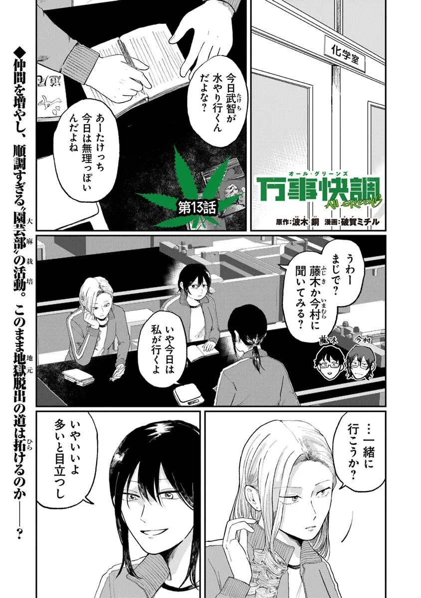 万事快調〈オール・グリーンズ〉 第13話 万事快調〈オール・グリーンズ〉 投稿者 admin - 6か月 前に 幸せな読書漫画 万事快調〈オール・グリーンズ〉 第13話 , いいねと共有ボタンをクリックすることを忘れないでください. Manga 万事快調〈オール・グリーンズ〉 常に更新されます 無料コミック Comic Top. 他のマンガの更新を読むことを忘れないでください。 マンガコレクションのリスト 無料コミック Comic Top マンガリストメニューにあります. お友達と共有しましょう! Facebook Twitter Pinterest Whatsapp 前のエピソード すべての章 次のエピソード リスト ページング Loading.. 前のエピソード すべての章 次のエピソード リスト ページング お友達と共有しましょう! Facebook Twitter Pinterest Whatsapp お気に入りに追加に続く 0 人 万事快調〈オール・グリーンズ〉 このクソ田舎からおさらばするには、金がいる。 だったら大麻、屋上で育てちゃえ。 ごく平凡な地方都市の工業高校に通う3人の女子高生が、 それぞれの事情で田舎脱出のために選んだ金策手段は【大麻栽培】!!! 満場一致で松本清張賞を受賞した新時代の青春クライム物語、コミカライズ開幕!!! 波木銅(原作)破賀ミチル(漫画) コミカライズサスペンスサブカルシリアス問題作女主人公女子高校生学園モノ田舎男性向け高校生