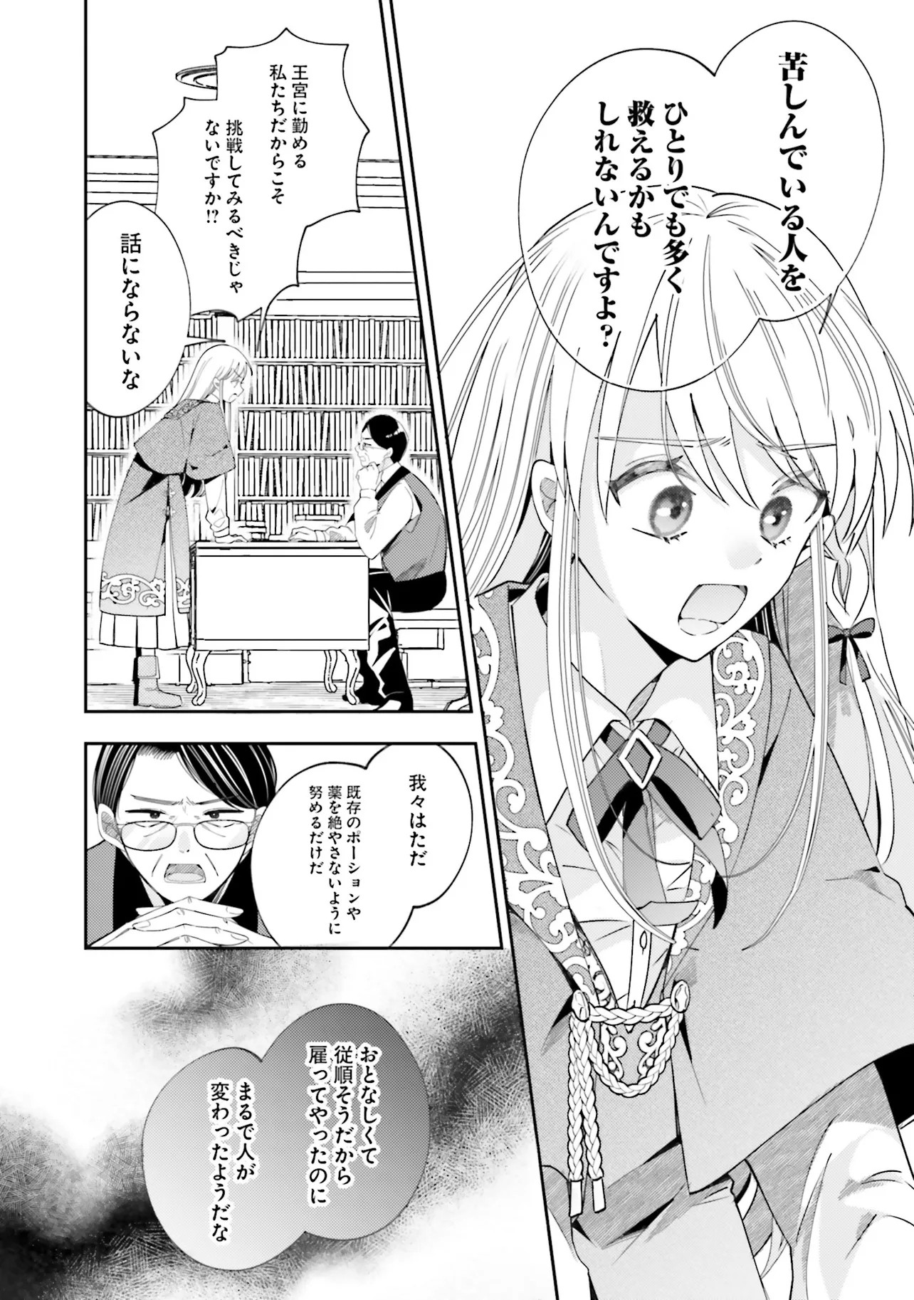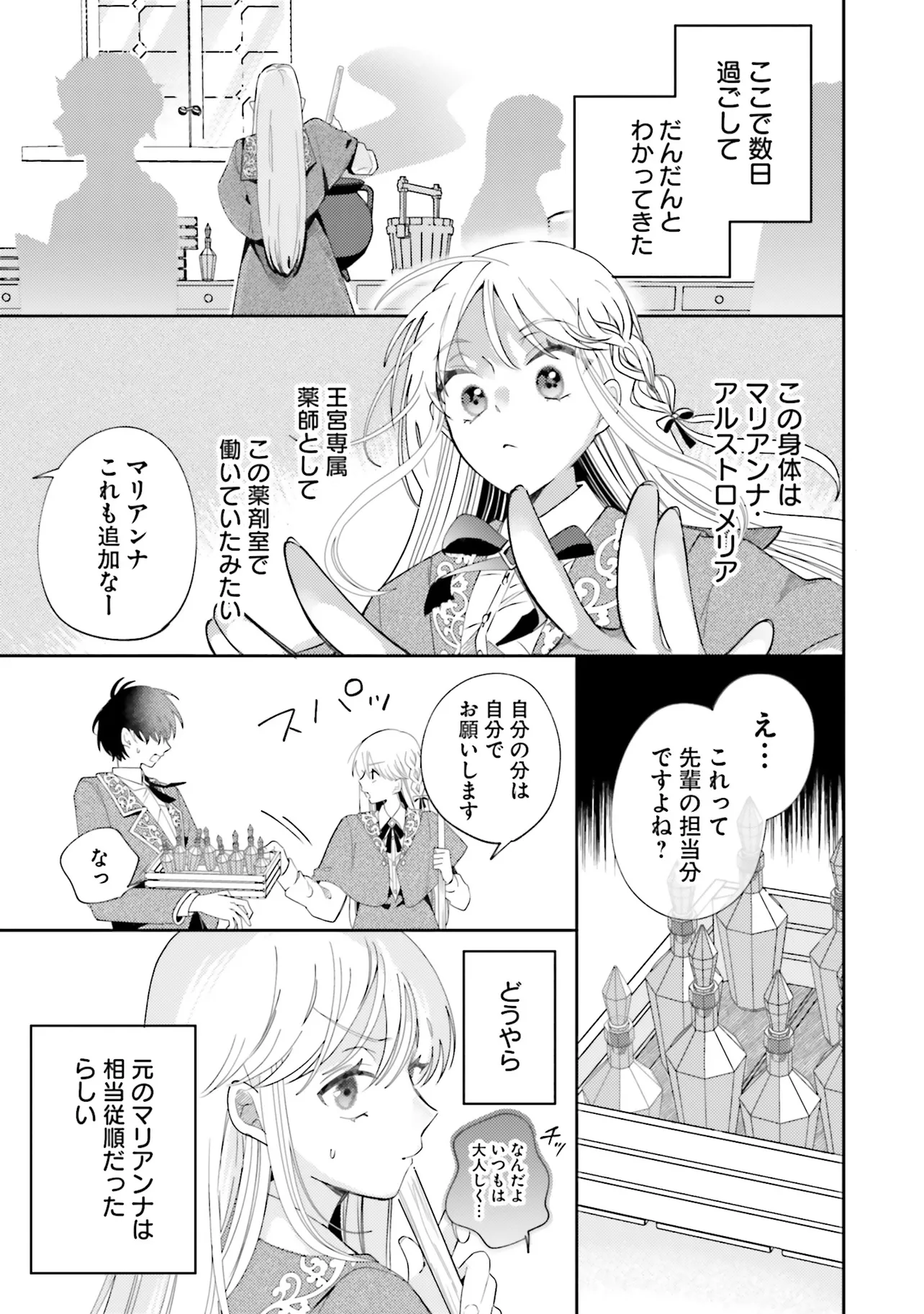 日本で薬剤師として働いていた主人公は、異世界で王宮専属薬師・マリアンナに転生する。