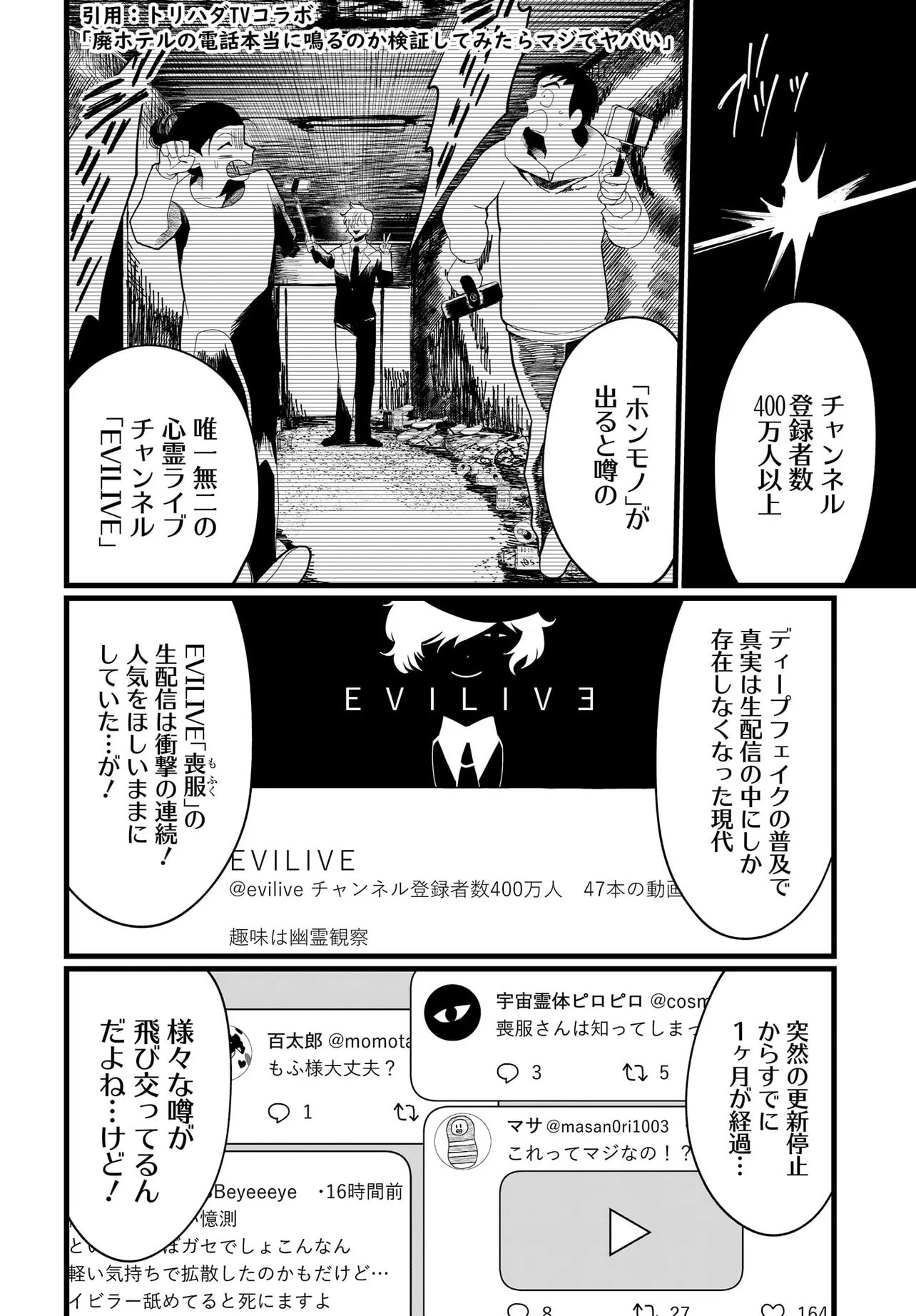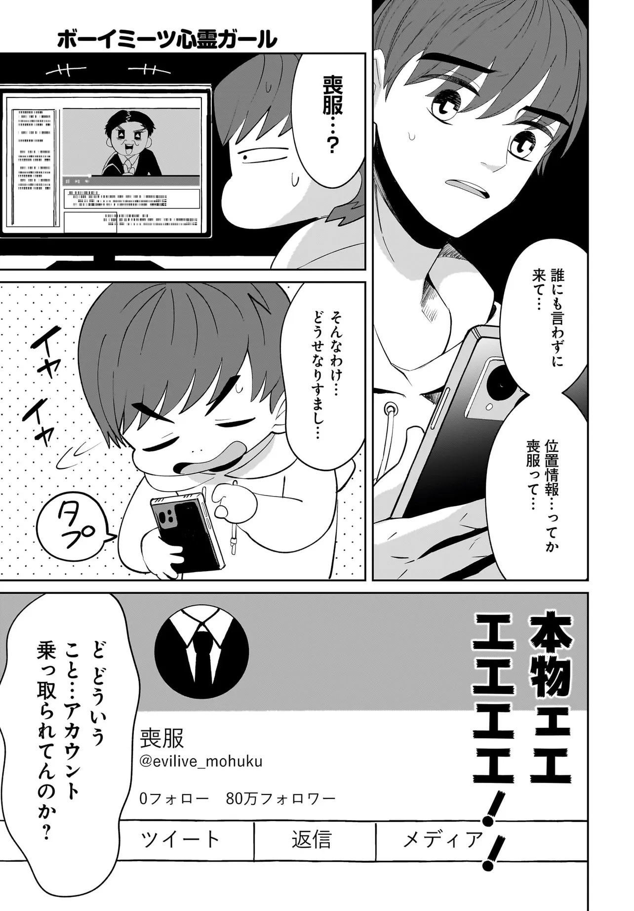 ボーイミーツ心霊ガール 第1話 ボーイミーツ心霊ガール 投稿者 admin - 2年 前に 幸せな読書漫画 ボーイミーツ心霊ガール 第1話 , いいねと共有ボタンをクリックすることを忘れないでください. Manga ボーイミーツ心霊ガール 常に更新されます 無料コミック Comic Top. 他のマンガの更新を読むことを忘れないでください。 マンガコレクションのリスト 無料コミック Comic Top マンガリストメニューにあります. お友達と共有しましょう! Facebook Twitter Pinterest Whatsapp 前のエピソード すべての章 次のエピソード リスト ページング Loading.. 前のエピソード すべての章 次のエピソード リスト ページング お友達と共有しましょう! Facebook Twitter Pinterest Whatsapp お気に入りに追加に続く 0 人 ボーイミーツ心霊ガール 有名になるためにもがく底辺配信者・水嶋。 己の霊感を利用し心霊配信をするも、鳴かず飛ばずで…。 そんなある日、失踪した有名配信者・喪服からとある位置情報のメッセージを受け取る。 人気になりたい、有名になりたい一心でその場所へ行ってみると…? さらに、回しっぱなしの動画に映っていたのは…!? 百合太郎 アツいカッコいいクセになるダークツンデレドキドキハラハラ人外友情・仲間日常系現代美少女裏社会・アングラ