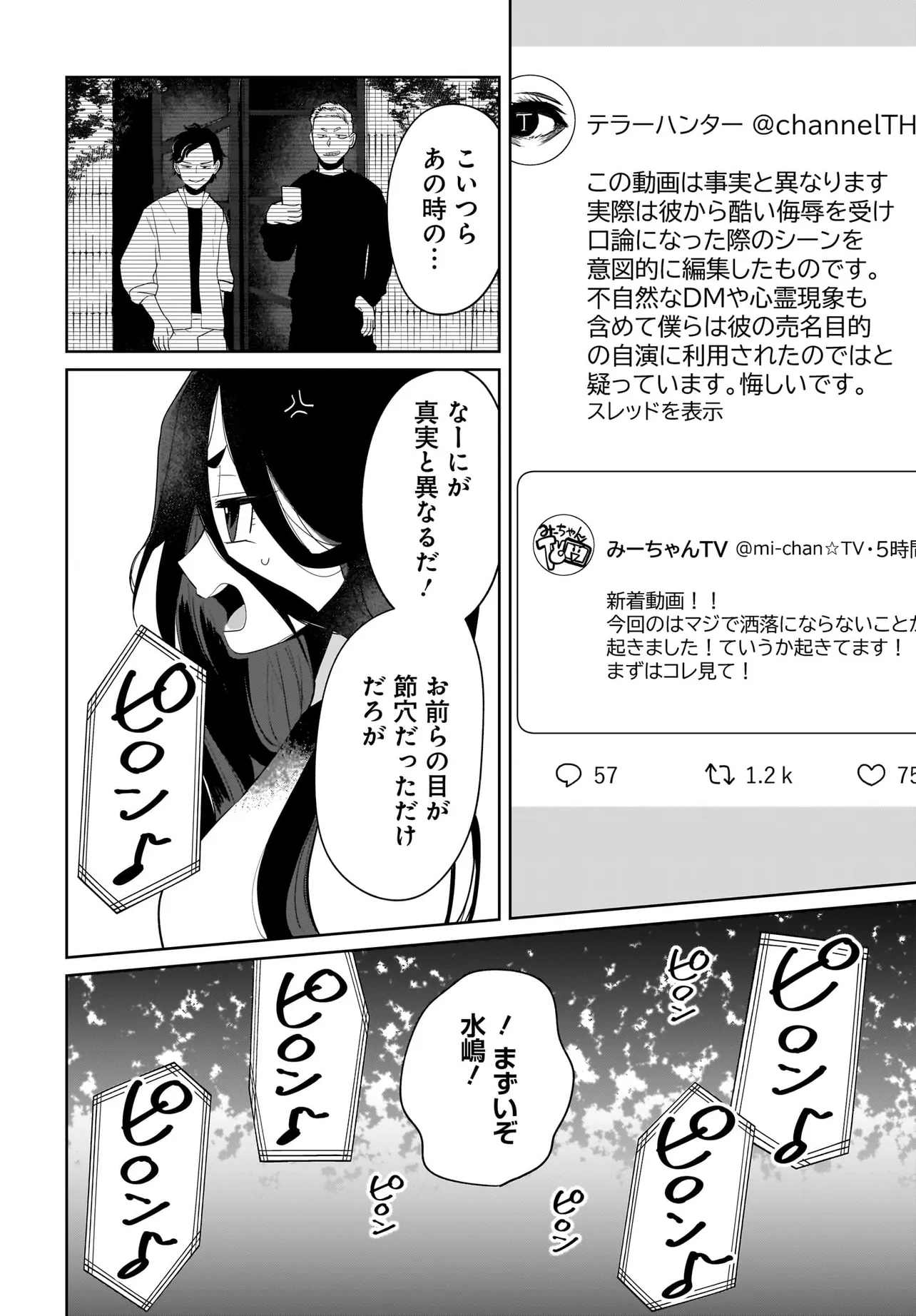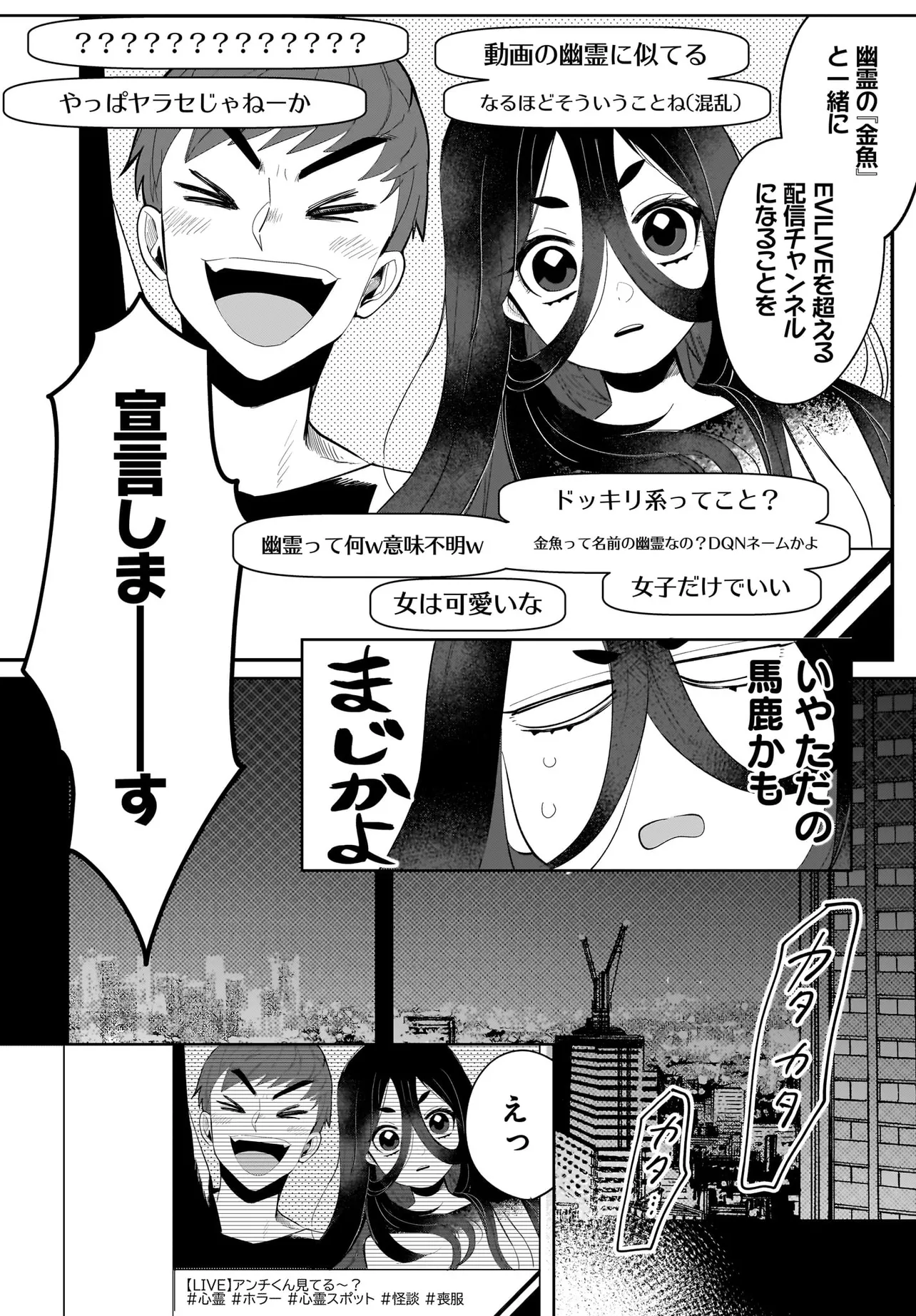 ボーイミーツ心霊ガール 第2話② ボーイミーツ心霊ガール 投稿者 admin - 2年 前に 幸せな読書漫画 ボーイミーツ心霊ガール 第2話② , いいねと共有ボタンをクリックすることを忘れないでください. Manga ボーイミーツ心霊ガール 常に更新されます 無料コミック Comic Top. 他のマンガの更新を読むことを忘れないでください。 マンガコレクションのリスト 無料コミック Comic Top マンガリストメニューにあります. お友達と共有しましょう! Facebook Twitter Pinterest Whatsapp 前のエピソード すべての章 次のエピソード リスト ページング Loading.. 前のエピソード すべての章 次のエピソード リスト ページング お友達と共有しましょう! Facebook Twitter Pinterest Whatsapp お気に入りに追加に続く 0 人 ボーイミーツ心霊ガール 有名になるためにもがく底辺配信者・水嶋。 己の霊感を利用し心霊配信をするも、鳴かず飛ばずで…。 そんなある日、失踪した有名配信者・喪服からとある位置情報のメッセージを受け取る。 人気になりたい、有名になりたい一心でその場所へ行ってみると…? さらに、回しっぱなしの動画に映っていたのは…!? 百合太郎 アツいカッコいいクセになるダークツンデレドキドキハラハラ人外友情・仲間日常系現代美少女裏社会・アングラ