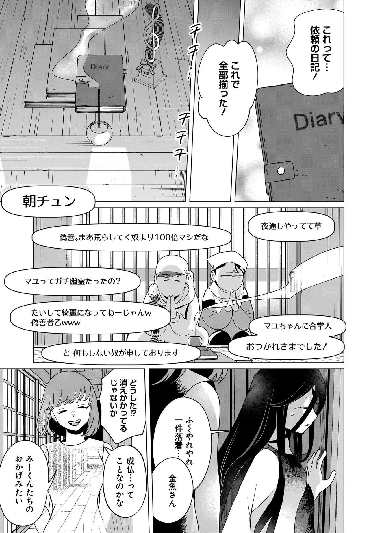 ボーイミーツ心霊ガール 第6話② ボーイミーツ心霊ガール 投稿者 admin - 1年 前に 幸せな読書漫画 ボーイミーツ心霊ガール 第6話② , いいねと共有ボタンをクリックすることを忘れないでください. Manga ボーイミーツ心霊ガール 常に更新されます 無料コミック Comic Top. 他のマンガの更新を読むことを忘れないでください。 マンガコレクションのリスト 無料コミック Comic Top マンガリストメニューにあります. お友達と共有しましょう! Facebook Twitter Pinterest Whatsapp 前のエピソード すべての章 次のエピソード リスト ページング Loading.. 前のエピソード すべての章 次のエピソード リスト ページング お友達と共有しましょう! Facebook Twitter Pinterest Whatsapp お気に入りに追加に続く 0 人 ボーイミーツ心霊ガール 有名になるためにもがく底辺配信者・水嶋。 己の霊感を利用し心霊配信をするも、鳴かず飛ばずで…。 そんなある日、失踪した有名配信者・喪服からとある位置情報のメッセージを受け取る。 人気になりたい、有名になりたい一心でその場所へ行ってみると…? さらに、回しっぱなしの動画に映っていたのは…!? 百合太郎 アツいカッコいいクセになるダークツンデレドキドキハラハラ人外友情・仲間日常系現代美少女裏社会・アングラ