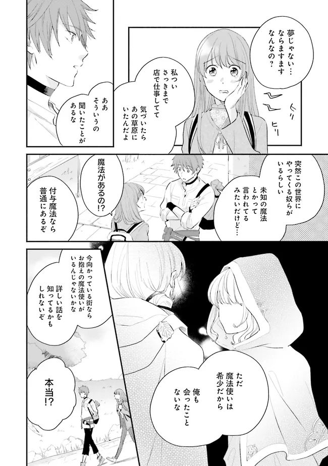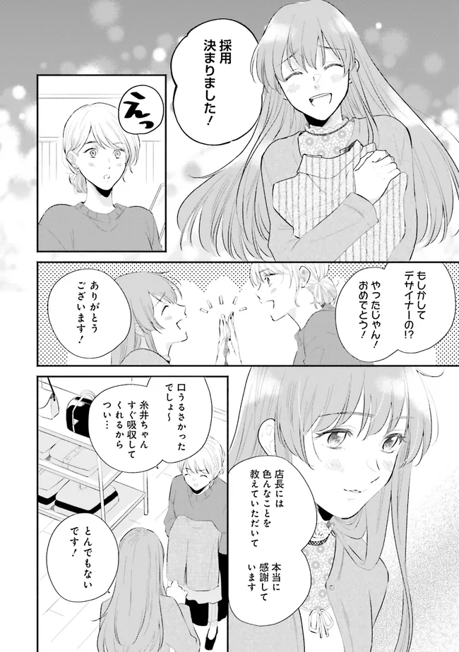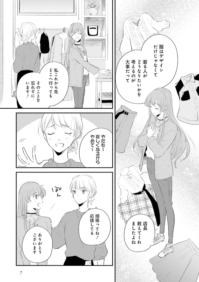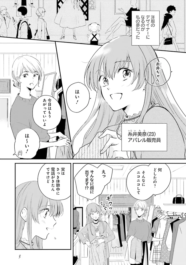 洋服屋でアルバイトをしながら、ファッションデザイナーを目指していた糸井美奈。ついに夢が叶い、デザイナー職への就職が決まった!……はずだったのに、不慮の事故により異世界へ転移してしまう。転移先で困っているところを助けてくれた新人冒険者・マリウスに連れられ街へ行くと、そこはファンタジーの世界で――。