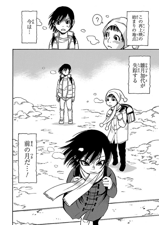 毎日を懊悩して暮らす青年漫画家の藤沼悟。日々上手くいかない現実にもがき続ける彼に、ある特殊な現象が起きる。それは【再上映(リバイバル)=時が巻き戻る現象】!!そして、母親の死をきっかけに【再上映】によって、悟ははるかな過去へと送り込まれるのだった…! 「同級生の少女の死」「連続誘拐殺人事件」「救えなかった友人」「犯人の正体…」 “過去”に戻り、“過去”に起きた様々な出来事に向き合う時、青年の“今”が動き始める…!! 「過去」と「現在」が連動する時空間サスペンス!!