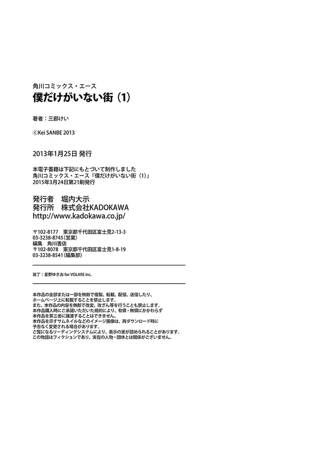 僕だけがいない街 【コミックス1巻公開】