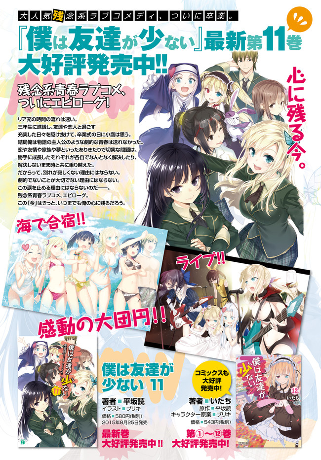 僕は友達が少ない 活動記録59 月の剣 僕は友達が少ない 投稿者 admin - 2年 前に 幸せな読書漫画 僕は友達が少ない 活動記録59 月の剣 , いいねと共有ボタンをクリックすることを忘れないでください. Manga 僕は友達が少ない 常に更新されます 無料コミック Comic Top. 他のマンガの更新を読むことを忘れないでください。 マンガコレクションのリスト 無料コミック Comic Top マンガリストメニューにあります. お友達と共有しましょう! Facebook Twitter Pinterest Whatsapp 前のエピソード すべての章 次のエピソード リスト ページング Loading.. 前のエピソード すべての章 次のエピソード リスト ページング お友達と共有しましょう! Facebook Twitter Pinterest Whatsapp お気に入りに追加に続く 1 人 僕は友達が少ない 友達の少ない羽瀬川小鷹は、ある時、美少女だがいつも不機嫌そうにしているクラスメイトの三日月夜空が一人で楽しげに喋っているのを目撃する。「もしかして幽霊とか見えたりするのか?」「友達と話していただけだ。エア友達と!」「(駄目だこいつ……)」夜空の無駄な行動力で友達を作るための部まで作ってしまうが、集まってくるのは残念な美少女ばかりで!? 二度にわたりTVアニメ化された大人気ライトノベルをコミカライズ! いたち(著者)ブリキ(キャラクター原案)平坂読(原作) アニメ化ラノベ原作ラブコメ男性向け
