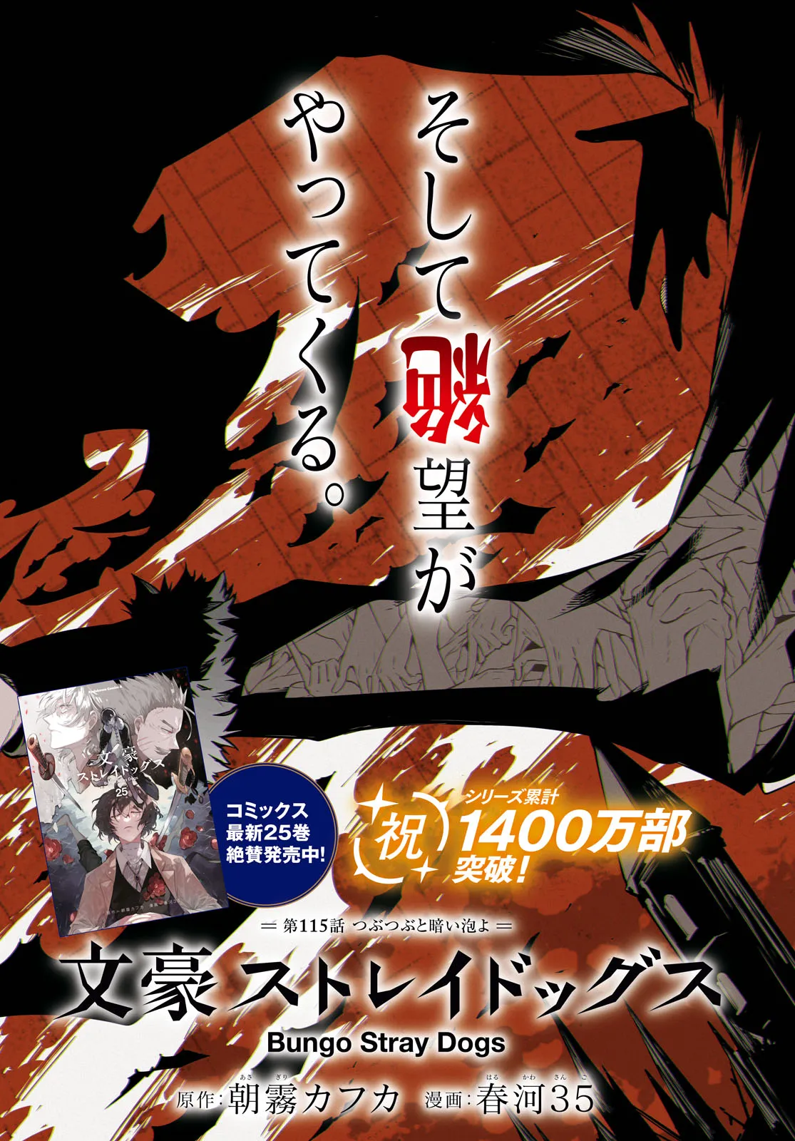 文豪ストレイドッグス 第115話-1 文豪ストレイドッグス 投稿者 admin - 1年 前に 幸せな読書漫画 文豪ストレイドッグス 第115話-1 , いいねと共有ボタンをクリックすることを忘れないでください. Manga 文豪ストレイドッグス 常に更新されます 無料コミック Comic Top. 他のマンガの更新を読むことを忘れないでください。 マンガコレクションのリスト 無料コミック Comic Top マンガリストメニューにあります. お友達と共有しましょう! Facebook Twitter Pinterest Whatsapp 前のエピソード すべての章 次のエピソード リスト ページング Loading.. 前のエピソード すべての章 次のエピソード リスト ページング お友達と共有しましょう! Facebook Twitter Pinterest Whatsapp お気に入りに追加に続く 1 人 文豪ストレイドッグス 孤児院を追われた青年・中島敦は、とある自殺志願の男を助ける。男の名は太宰治…国木田、与謝野らと共に異能力集団「武装探偵社」に所属し、「人食い虎事件」を調査していて…!?横浜を舞台に繰り広げられる文豪異能力バトルアクション!ヤングエース好評連載中。 春河35(漫画)朝霧カフカ(原作) アニメ化コミカライズサスペンスミステリー
