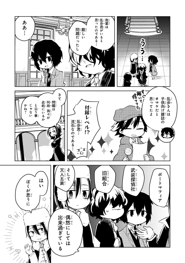 “文豪ストレイドッグス わん!” 第161話 文豪ストレイドッグス わん! 投稿者 admin - 2年 前に 幸せな読書漫画 “文豪ストレイドッグス わん!” 第161話 , いいねと共有ボタンをクリックすることを忘れないでください. Manga 文豪ストレイドッグス わん! 常に更新されます 無料コミック Comic Top. 他のマンガの更新を読むことを忘れないでください。 マンガコレクションのリスト 無料コミック Comic Top マンガリストメニューにあります. お友達と共有しましょう! Facebook Twitter Pinterest Whatsapp 前のエピソード すべての章 次のエピソード リスト ページング Loading.. 前のエピソード すべての章 次のエピソード リスト ページング お友達と共有しましょう! Facebook Twitter Pinterest Whatsapp お気に入りに追加に続く 0 人 文豪ストレイドッグス わん! 「文豪ストレイドッグス」公式ギャグスピンオフ! 大人気作品「文豪ストレイドッグス」の和やかな日常をお届け☆ 武装探偵社やマフィアのキャラクターがミニマムな姿に!? 可愛い敦達による、本編とはひと味違ったほんわかギャグ漫画! かないねこ(漫画)春河35(キャラクター原案)朝霧カフカ(原作) ギャグコミカライズスピンオフほのぼの