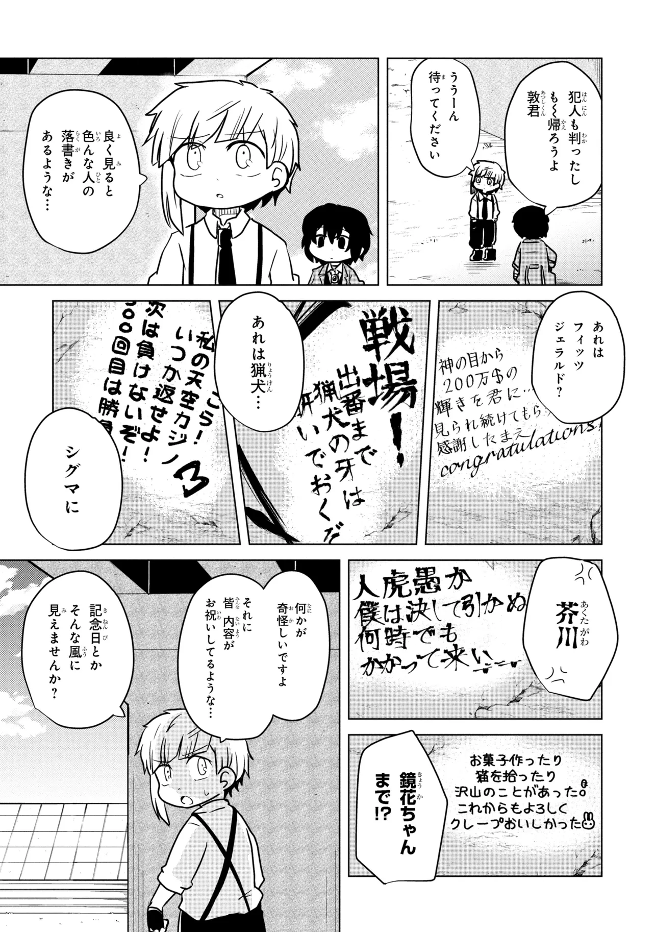 文豪ストレイドッグス わん! 第200話 文豪ストレイドッグス わん! 投稿者 admin - 4か月 前に 幸せな読書漫画 文豪ストレイドッグス わん! 第200話 , いいねと共有ボタンをクリックすることを忘れないでください. Manga 文豪ストレイドッグス わん! 常に更新されます 無料コミック Comic Top. 他のマンガの更新を読むことを忘れないでください。 マンガコレクションのリスト 無料コミック Comic Top マンガリストメニューにあります. お友達と共有しましょう! Facebook Twitter Pinterest Whatsapp 前のエピソード すべての章 次のエピソード リスト ページング Loading.. 前のエピソード すべての章 次のエピソード リスト ページング お友達と共有しましょう! Facebook Twitter Pinterest Whatsapp お気に入りに追加に続く 0 人 文豪ストレイドッグス わん! 「文豪ストレイドッグス」公式ギャグスピンオフ! 大人気作品「文豪ストレイドッグス」の和やかな日常をお届け☆ 武装探偵社やマフィアのキャラクターがミニマムな姿に!? 可愛い敦達による、本編とはひと味違ったほんわかギャグ漫画! かないねこ(漫画)春河35(キャラクター原案)朝霧カフカ(原作) ギャグコミカライズスピンオフほのぼの