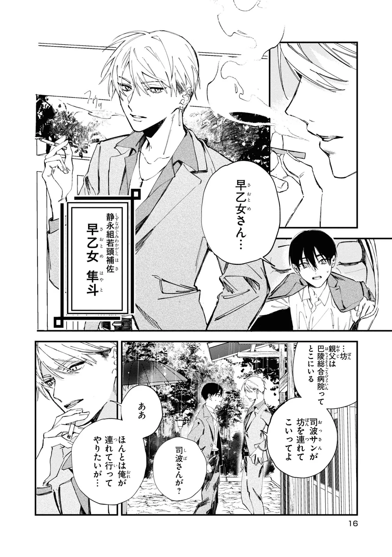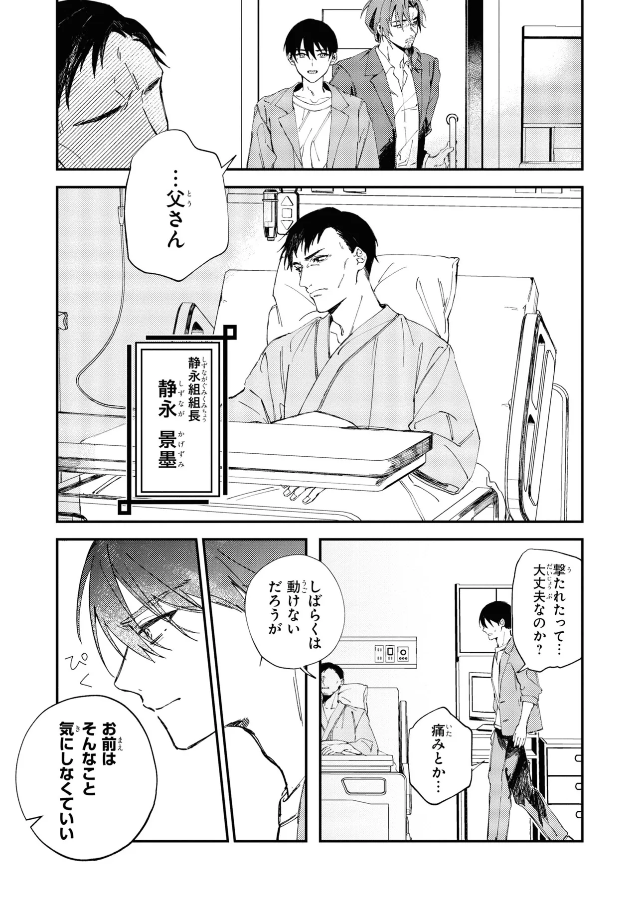 任侠×サイコパスストーリー、始動!! ヤクザの組長の息子でありながら一般人として生活している高校生の静永 澪。 ある日、組長である父親が敵勢力の襲撃に遭い、突然「組長代行」に任命されてしまう。 澪のまわりで起こる不可解な事件、そして世話係の王賀真純とともに澪が見た裏社会の姿とは──!? 黒い羊(やっかいもの)たちよ、運命に抗え。