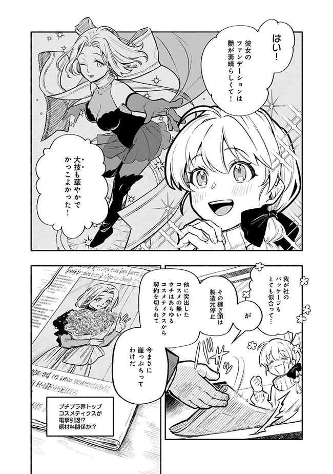 人間の管理する闘技者たちが、自らが纏う美的技術(コスメ)の商品化・軍資金・地位獲得のため、年一回開催される大会コスメ・アワードで争う近似異世界。 闘技者ノエルは向上心もやる気も無く存在意義を感じていないタイプの少年だった。 そんなノエルは、プチプラメーカー勤務だが「美意識に欠ける」と怒られてばかりの落ちこぼれ少女ファーマーと出会ったことで、 再び煌びやかな闘いの世界へその一歩を踏み出した。それぞれの思いが交錯しつつも二人三脚の闘いが始まる!!