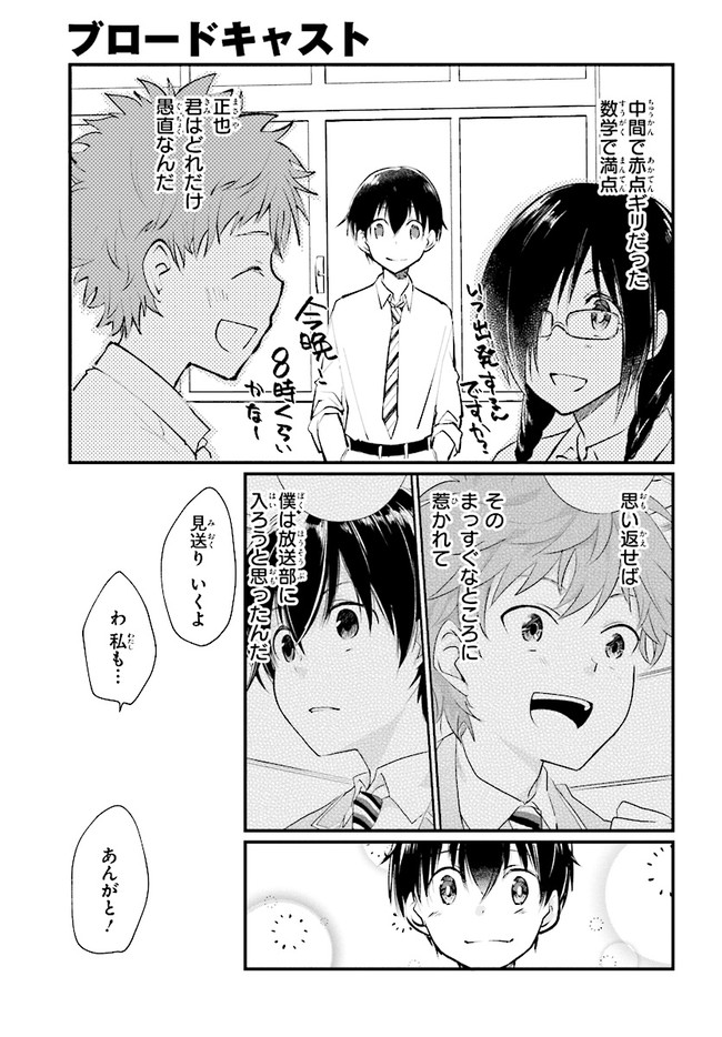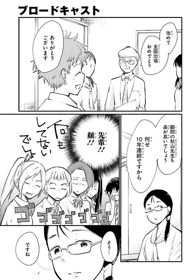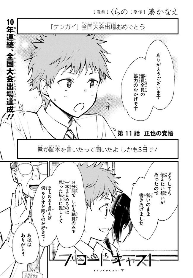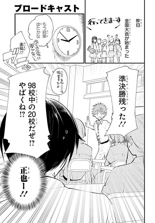 ブロードキャスト 第11話 ブロードキャスト 投稿者 admin - 6年 前に 幸せな読書漫画 ブロードキャスト 第11話 , いいねと共有ボタンをクリックすることを忘れないでください. Manga ブロードキャスト 常に更新されます 無料コミック Comic Top. 他のマンガの更新を読むことを忘れないでください。 マンガコレクションのリスト 無料コミック Comic Top マンガリストメニューにあります. お友達と共有しましょう! Facebook Twitter Pinterest Whatsapp 前のエピソード すべての章 次のエピソード リスト ページング Loading.. 前のエピソード すべての章 次のエピソード リスト ページング お友達と共有しましょう! Facebook Twitter Pinterest Whatsapp お気に入りに追加に続く 0 人 ブロードキャスト 2018年8月に刊行された湊かなえ初の学園小説『ブロードキャスト』をコミカライズ!! 町田圭祐は中学時代、陸上部に所属し、駅伝で全国大会を目指していた。 しかし3年生最後の県大会で敗退。その後、陸上の名門校に入学した圭祐だったが、とある事件から陸上を続けられなくなってしまう。 そんな時、同じ中学出身の正也が「一緒に放送部に入ろう!」と声を掛けてきて――!? 湊かなえ原作、本格学園青春ストーリー。 くらの(漫画)湊かなえ(原作) 学園モノ青春