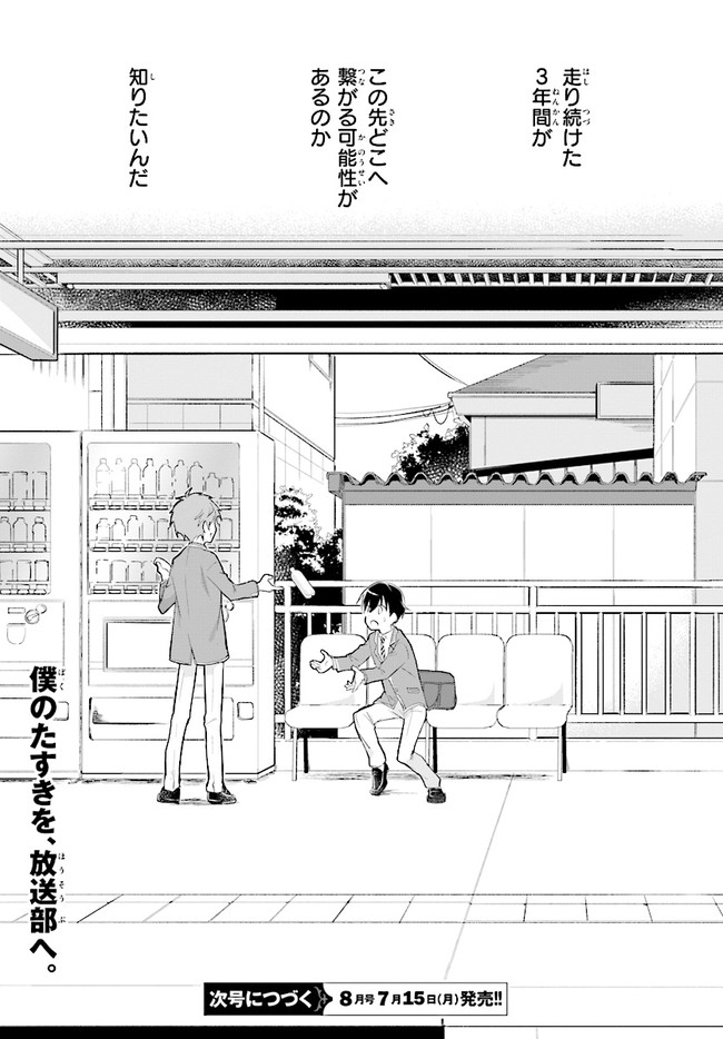ブロードキャスト 第2話 ブロードキャスト 投稿者 admin - 6年 前に 幸せな読書漫画 ブロードキャスト 第2話 , いいねと共有ボタンをクリックすることを忘れないでください. Manga ブロードキャスト 常に更新されます 無料コミック Comic Top. 他のマンガの更新を読むことを忘れないでください。 マンガコレクションのリスト 無料コミック Comic Top マンガリストメニューにあります. お友達と共有しましょう! Facebook Twitter Pinterest Whatsapp 前のエピソード すべての章 次のエピソード リスト ページング Loading.. 前のエピソード すべての章 次のエピソード リスト ページング お友達と共有しましょう! Facebook Twitter Pinterest Whatsapp お気に入りに追加に続く 0 人 ブロードキャスト 2018年8月に刊行された湊かなえ初の学園小説『ブロードキャスト』をコミカライズ!! 町田圭祐は中学時代、陸上部に所属し、駅伝で全国大会を目指していた。 しかし3年生最後の県大会で敗退。その後、陸上の名門校に入学した圭祐だったが、とある事件から陸上を続けられなくなってしまう。 そんな時、同じ中学出身の正也が「一緒に放送部に入ろう!」と声を掛けてきて――!? 湊かなえ原作、本格学園青春ストーリー。 くらの(漫画)湊かなえ(原作) 学園モノ青春