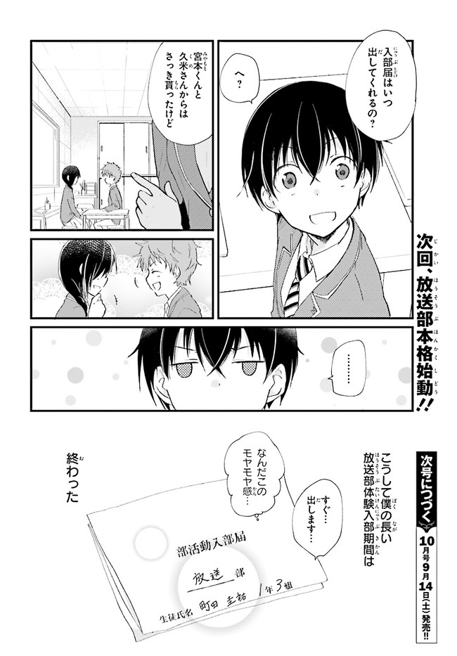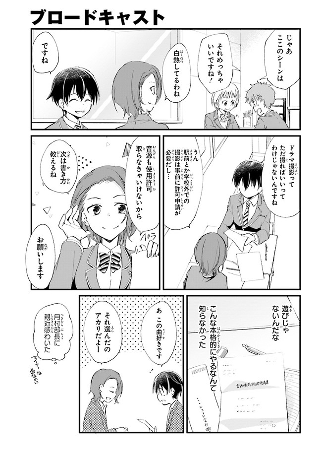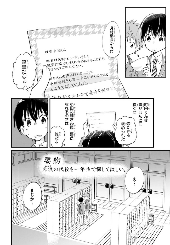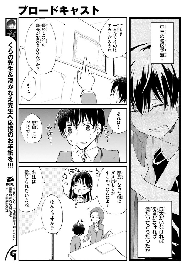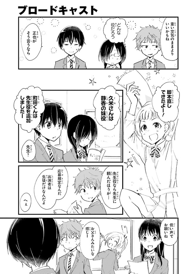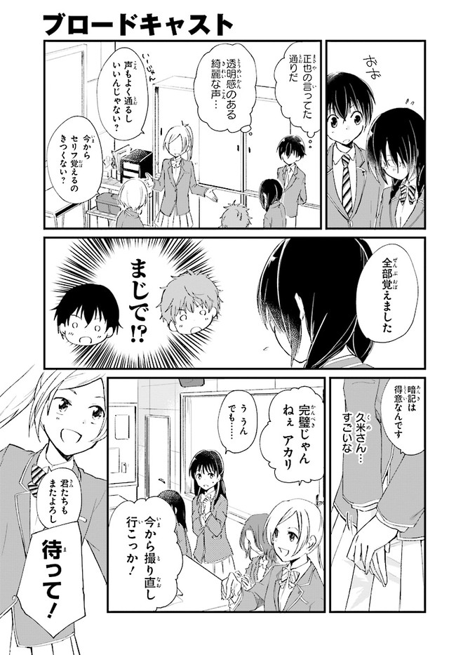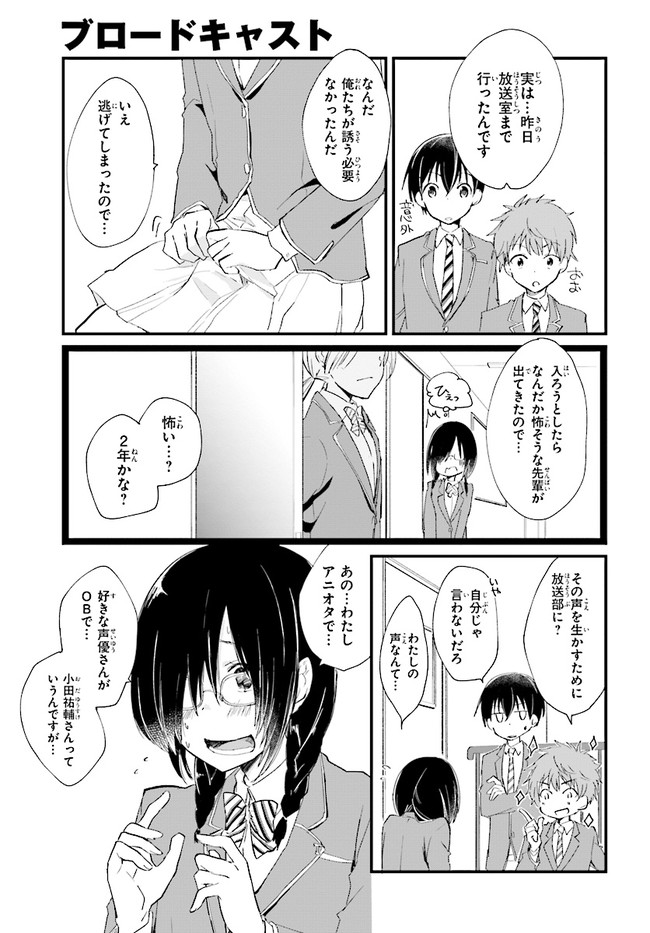 ブロードキャスト 第4話 ブロードキャスト 投稿者 admin - 6年 前に 幸せな読書漫画 ブロードキャスト 第4話 , いいねと共有ボタンをクリックすることを忘れないでください. Manga ブロードキャスト 常に更新されます 無料コミック Comic Top. 他のマンガの更新を読むことを忘れないでください。 マンガコレクションのリスト 無料コミック Comic Top マンガリストメニューにあります. お友達と共有しましょう! Facebook Twitter Pinterest Whatsapp 前のエピソード すべての章 次のエピソード リスト ページング Loading.. 前のエピソード すべての章 次のエピソード リスト ページング お友達と共有しましょう! Facebook Twitter Pinterest Whatsapp お気に入りに追加に続く 0 人 ブロードキャスト 2018年8月に刊行された湊かなえ初の学園小説『ブロードキャスト』をコミカライズ!! 町田圭祐は中学時代、陸上部に所属し、駅伝で全国大会を目指していた。 しかし3年生最後の県大会で敗退。その後、陸上の名門校に入学した圭祐だったが、とある事件から陸上を続けられなくなってしまう。 そんな時、同じ中学出身の正也が「一緒に放送部に入ろう!」と声を掛けてきて――!? 湊かなえ原作、本格学園青春ストーリー。 くらの(漫画)湊かなえ(原作) 学園モノ青春
