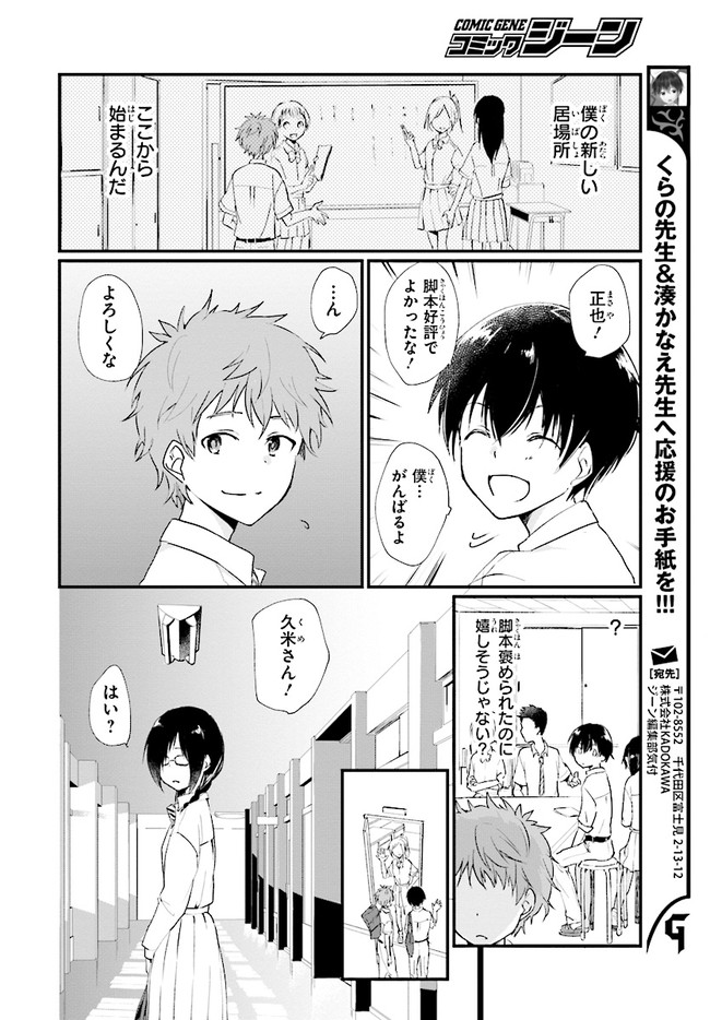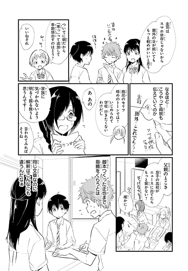 ブロードキャスト 第6話 ブロードキャスト 投稿者 admin - 6年 前に 幸せな読書漫画 ブロードキャスト 第6話 , いいねと共有ボタンをクリックすることを忘れないでください. Manga ブロードキャスト 常に更新されます 無料コミック Comic Top. 他のマンガの更新を読むことを忘れないでください。 マンガコレクションのリスト 無料コミック Comic Top マンガリストメニューにあります. お友達と共有しましょう! Facebook Twitter Pinterest Whatsapp 前のエピソード すべての章 次のエピソード リスト ページング Loading.. 前のエピソード すべての章 次のエピソード リスト ページング お友達と共有しましょう! Facebook Twitter Pinterest Whatsapp お気に入りに追加に続く 0 人 ブロードキャスト 2018年8月に刊行された湊かなえ初の学園小説『ブロードキャスト』をコミカライズ!! 町田圭祐は中学時代、陸上部に所属し、駅伝で全国大会を目指していた。 しかし3年生最後の県大会で敗退。その後、陸上の名門校に入学した圭祐だったが、とある事件から陸上を続けられなくなってしまう。 そんな時、同じ中学出身の正也が「一緒に放送部に入ろう!」と声を掛けてきて――!? 湊かなえ原作、本格学園青春ストーリー。 くらの(漫画)湊かなえ(原作) 学園モノ青春
