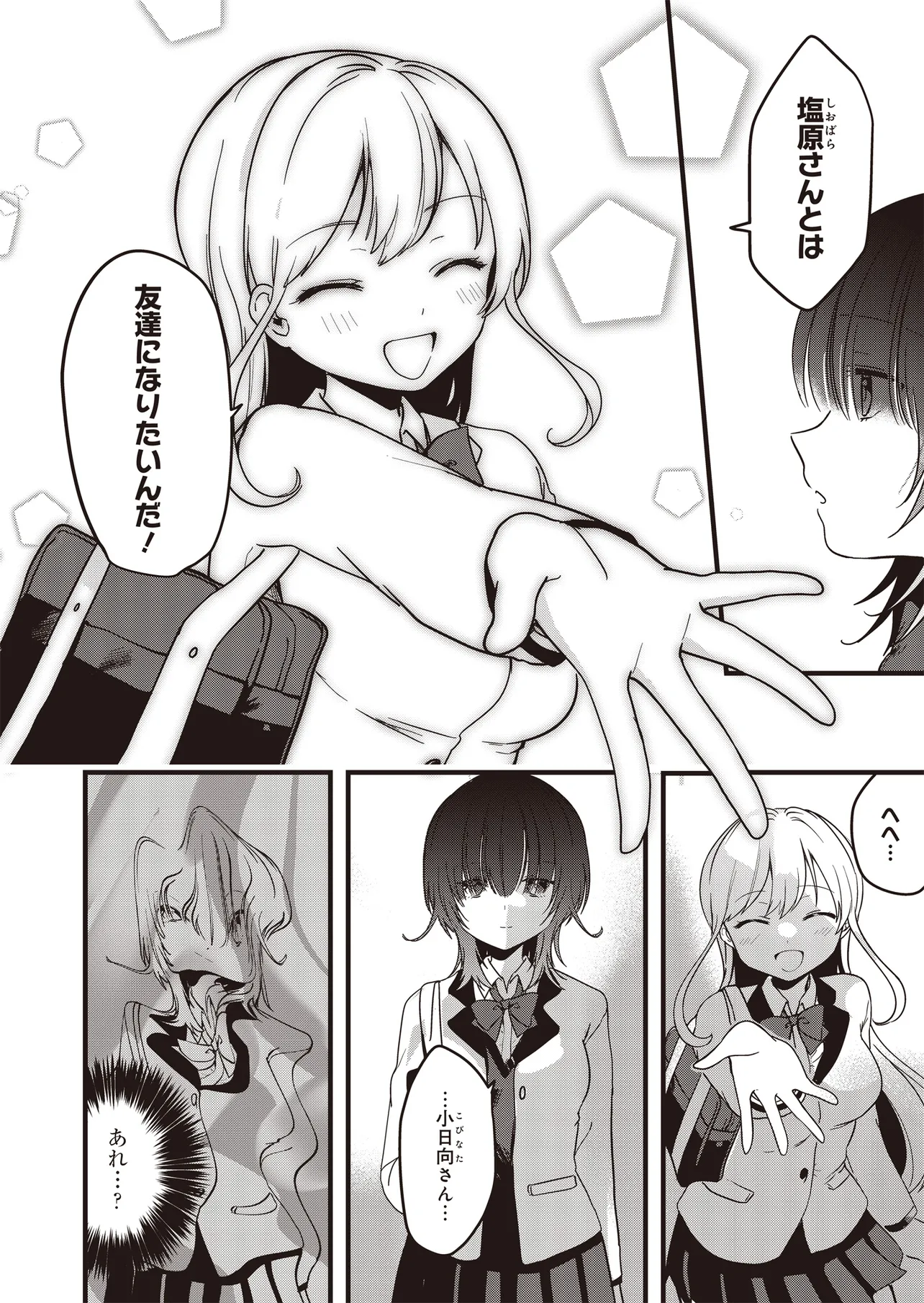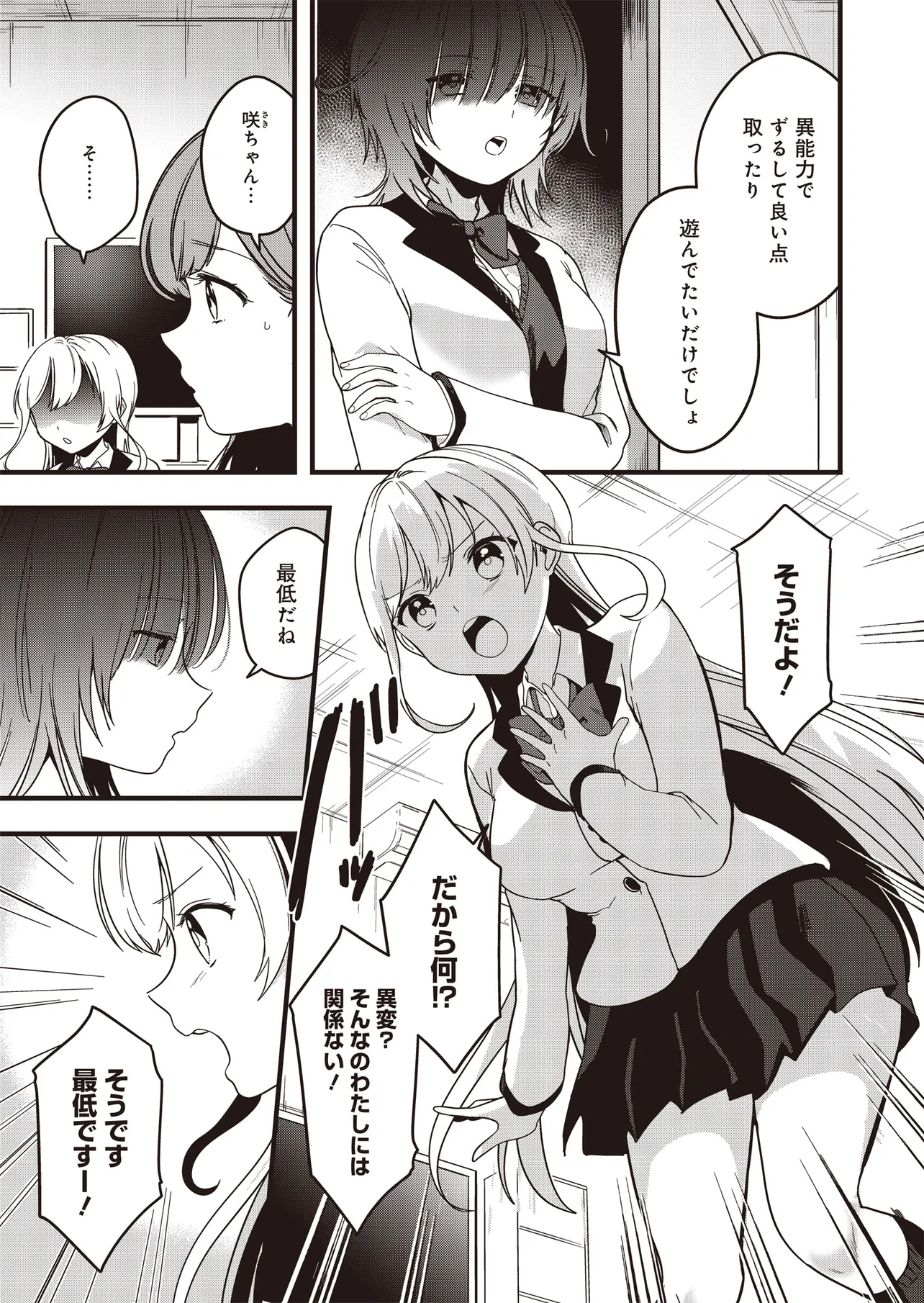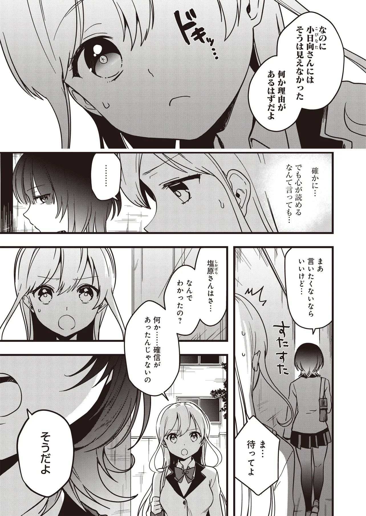 高校入学初日に突然、「人の考えが読める」異能力に目覚めた小日向さくらは、この能力を使い悠々自適な学生生活を送っていた。そんなある日、クラスメイト・塩原咲も同じ能力をもっていること告げられる。彼女との出会いをきっかけに、さくらの日常は姿を変えていく――。