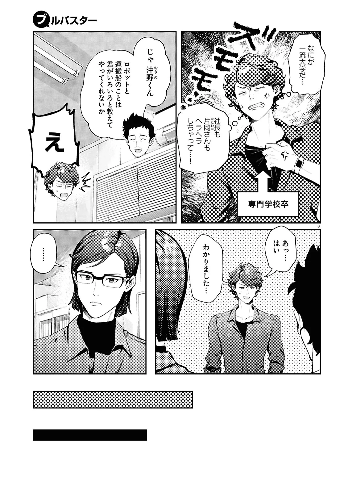 ブルバスター 第7話 期待の新人<前編> ブルバスター 投稿者 admin - 12か月 前に 幸せな読書漫画 ブルバスター 第7話 期待の新人<前編> , いいねと共有ボタンをクリックすることを忘れないでください. Manga ブルバスター 常に更新されます 無料コミック Comic Top. 他のマンガの更新を読むことを忘れないでください。 マンガコレクションのリスト 無料コミック Comic Top マンガリストメニューにあります. お友達と共有しましょう! Facebook Twitter Pinterest Whatsapp 前のエピソード すべての章 次のエピソード リスト ページング Loading.. 前のエピソード すべての章 次のエピソード リスト ページング お友達と共有しましょう! Facebook Twitter Pinterest Whatsapp お気に入りに追加に続く 0 人 ブルバスター 立ち向かえ! 巨獣(カイブツ)と現実(コスト)。 ロボットオタクの沖野鉄郎が出向したのは、万年金欠の零細企業「波止工業」。田島が社長を務める波止が対峙しているのは、“巨獣” と名付けられた謎の生物だった――! 巨獣を退治するという「理想」と、コストという「現実」の狭間で、波止に未来は訪れるのか!? 経済的に正しいロボットヒーロープロジェクト、コミカライズ堂々開始! P.I.C.S(原作)中尾浩之(原作)伊丹ひしお(漫画)窪之内英策(キャラクター原案) SFアクションお仕事ヒーローメカロボット社会人美女
